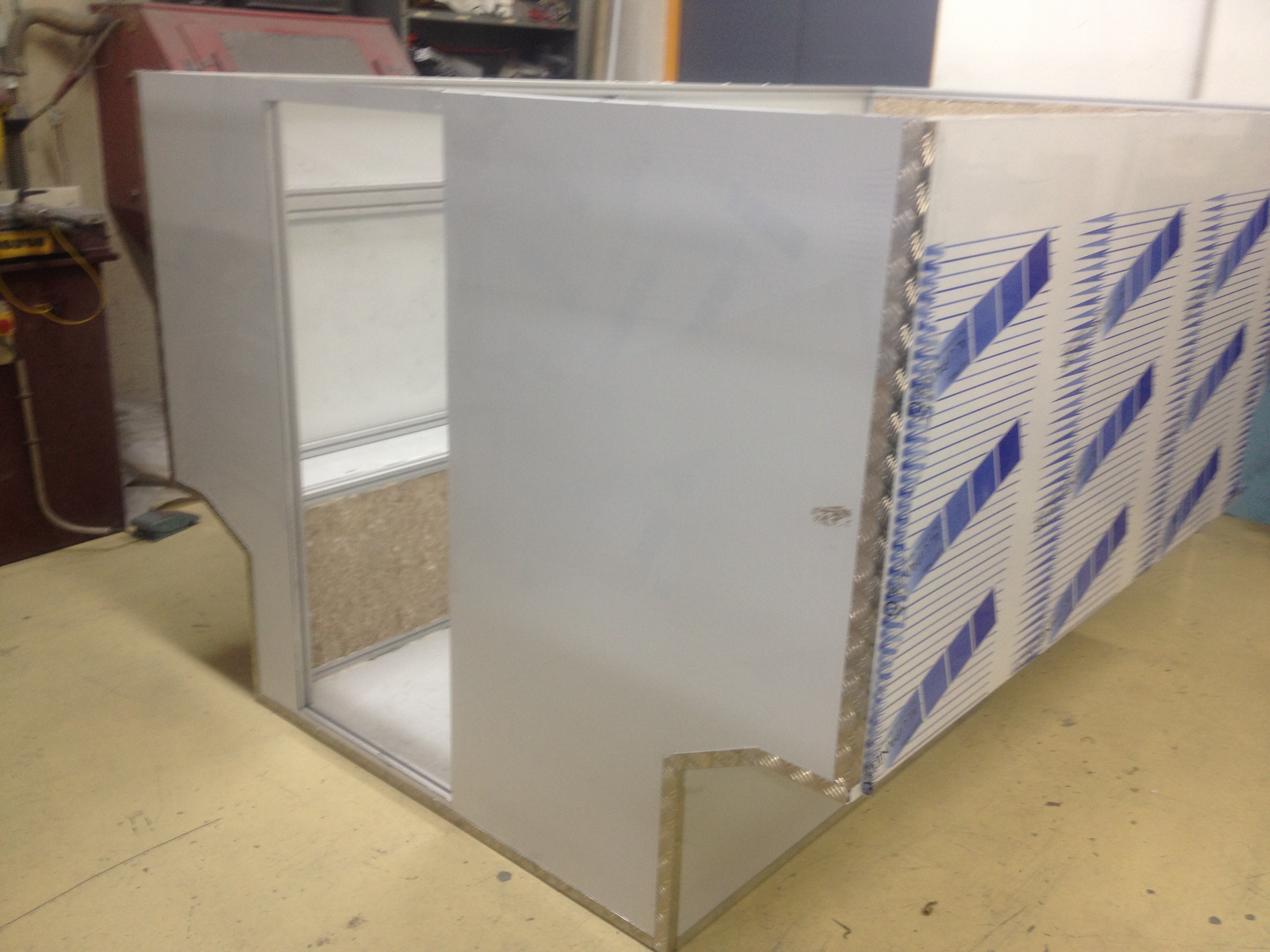 Bon , ben les panneux extérieurs sont de marque MULTIPANEL et série ALUPANEL et d'une épaisseur de 4mm et seront en 3mm pour l'intérieur . C'est un panneau sandwitch alut plastique alu , très résistant , qui s'usine très bien , se coupe , se lime , se taraude , se colle etcetc .
