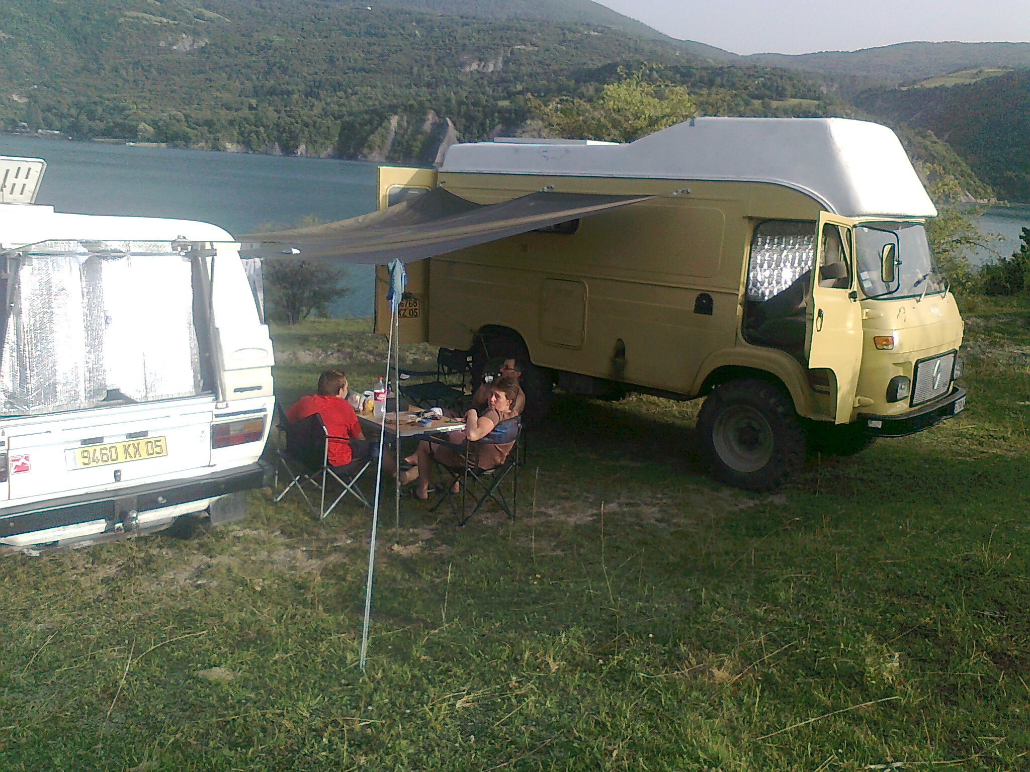 en combi T3 doka syncro 16 pouces ,son "lit a roulette" et on a fini samedi soir au pied du col et tunnel du parpaillon a plus sylvain