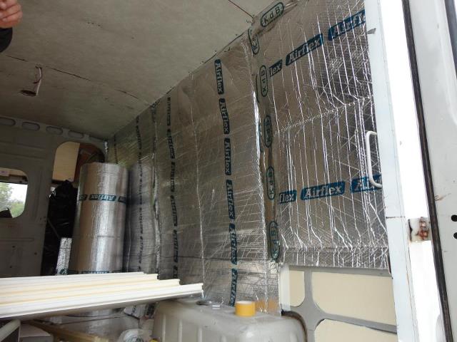 Mon camarade Pierre parti chercher du travail perdu dans la montagne à 8h de route je me retrouve presque tout seul pour l'isolation des cotés Styrodur airflex et seulement 200 vis plus tard