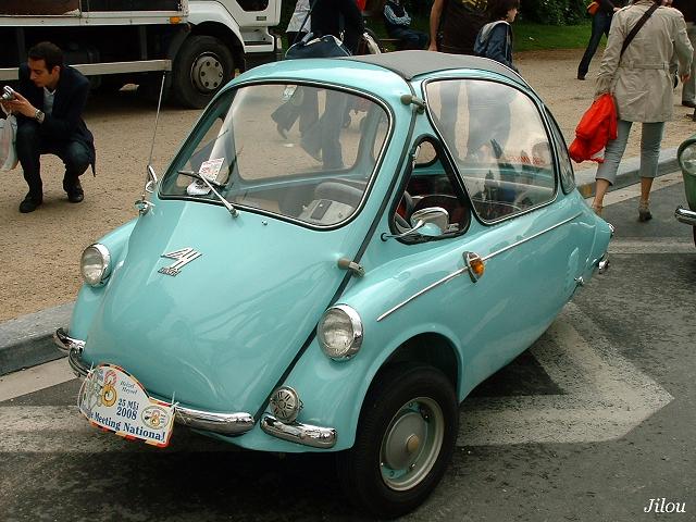 Ouais je connais cette photo d’isetta, c’est moi qui l'ai mise sur le forum, quand à celle que tu viens de mettre je crois avoir vus un bout du film avec cette voiture justement, il s'agirait d'une Messerschmitt_karo comme celle ci