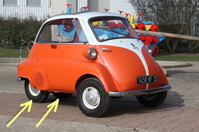 tant pis pour l'heure mais je viens de m'apercevoir de la collossâle bêtise que j'ai raconté :oops: en effet il n'y aurait que l'isetta qui possédait 2 roues arrière ainsi que la Messerschmitt Tiger TG500, ce modèle ayant été amélioré par l'ingénieur qui avait apporté le concept chez Messerschmitt et avait repris pour son compte la fabrication de ce véhicule ma fois fort sympa pour ma part, voici un lien qui est intéressant