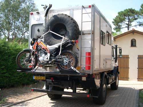 Il y a de super portes moto mais avec une porte arrière pour accès à la cellule il faut un engin facile à manipuler. Comme on n'est pas toujours dans le désert, il faut penser à manipuler l'ensemble dans un site plus restreint, tel un parking de super-marché...