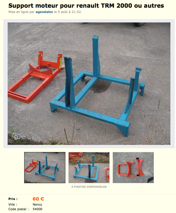 Rien n'empèche de souder ou de boulonner d'autres pattes pour y poser le moteur de la voiture, et autres, j'ai un support de présentation pour BT de Jeep (BT avec découpe en écorché pour voir la cinématique),ca me faisait un excellent support de travail qui il y a qques mois est devenu un support d’exposition de missile