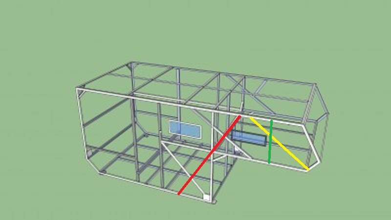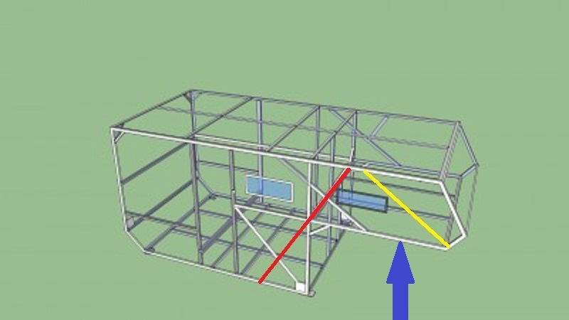 Pour ce qui est des plans que j'ai vus dans ce post pour une structure en tubes, il y a eu des améliorations mais les principes de base de ce genre de structure ne me paraissent pas encore totalement respectés. Les divers éléments (y compris les renforts en biais) doivent renvoyer les efforts de façon à se "contredirent" exactement (déjà signalé) mais ce n'est pas encore ça. Par ailleurs, il vaudrait mieux adapter la forme et la taille des fenêtres à la structure plutôt que l'inverse.