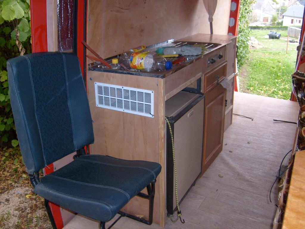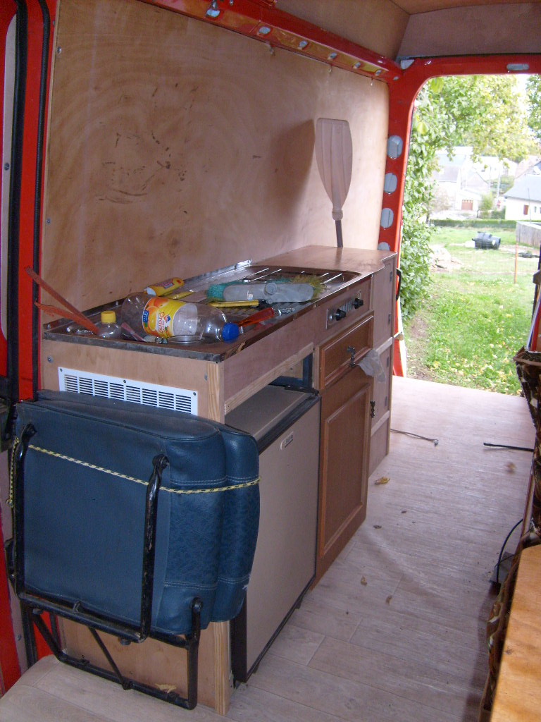 manque encore un petit placard au dessus du siège 2 places , tout le raccordement cuve eau et évier