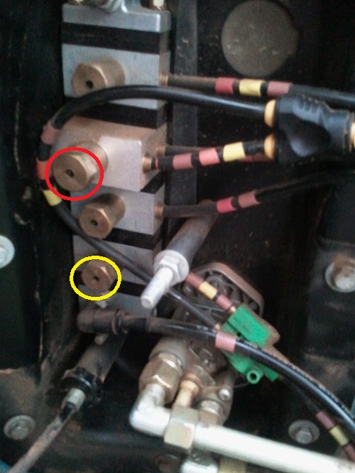 Quand j'enclenche les petites vitesses, l'air s'échappe par le trou entouré sur la photo (idem pour le blocage de différentiel avant).