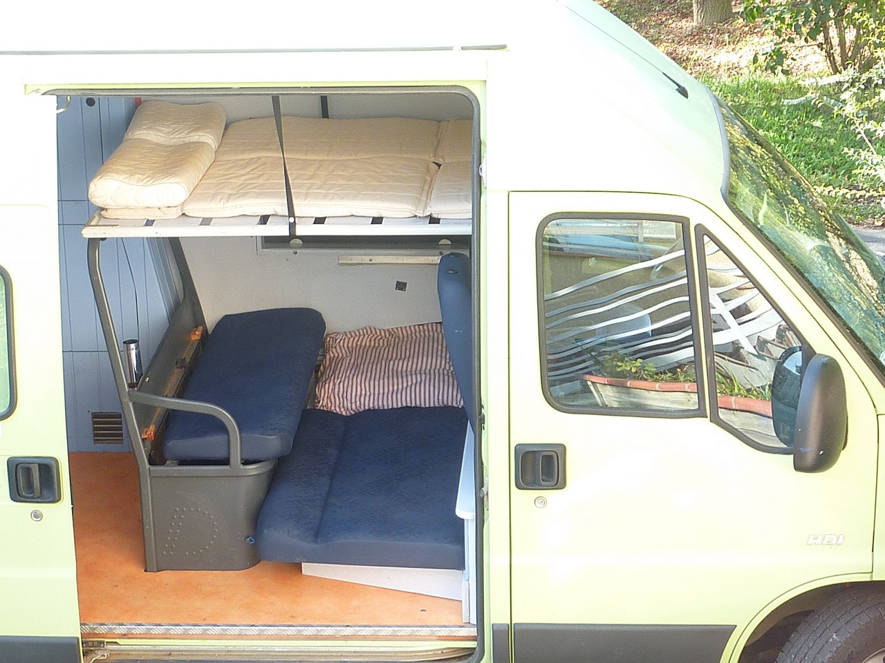 Comme Maman aime bien son confort, il fallait un minimum de place, et en particulier une salle de bain et du rangement. Donc on est parti sur un fourgon.