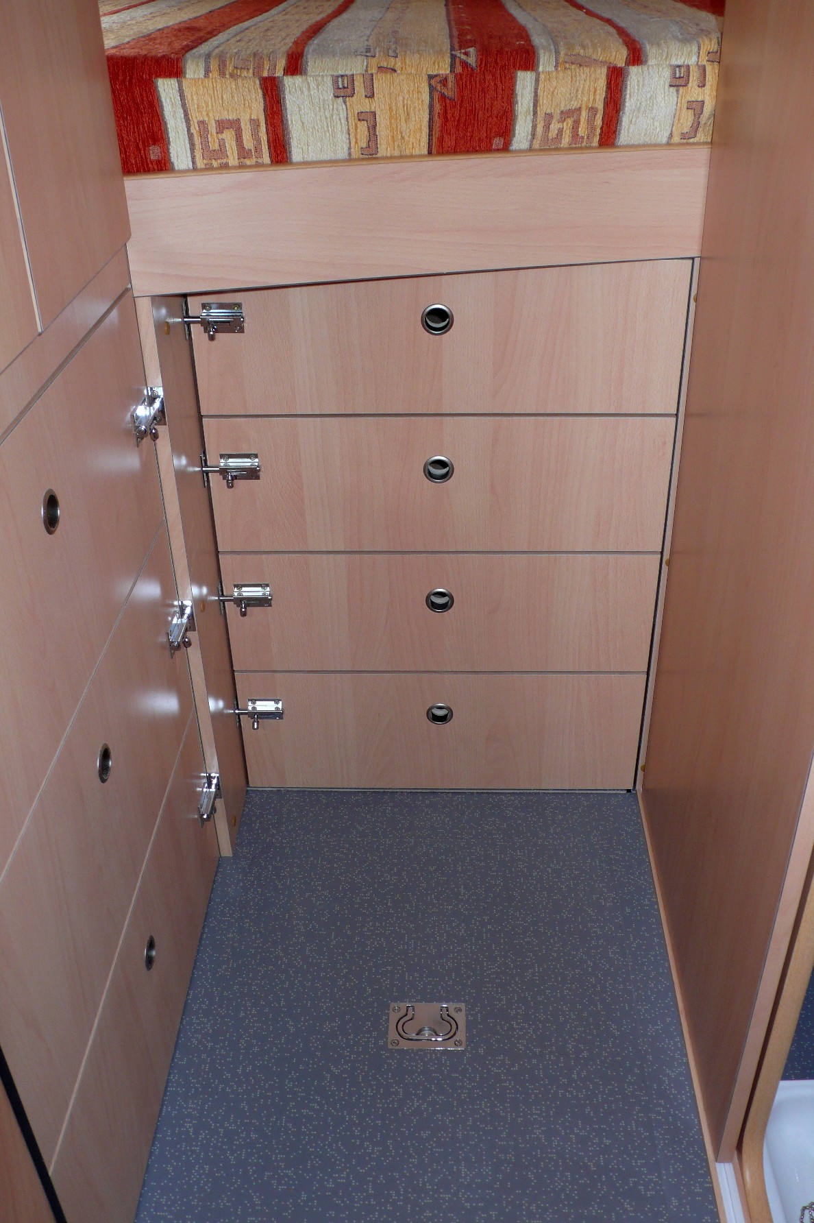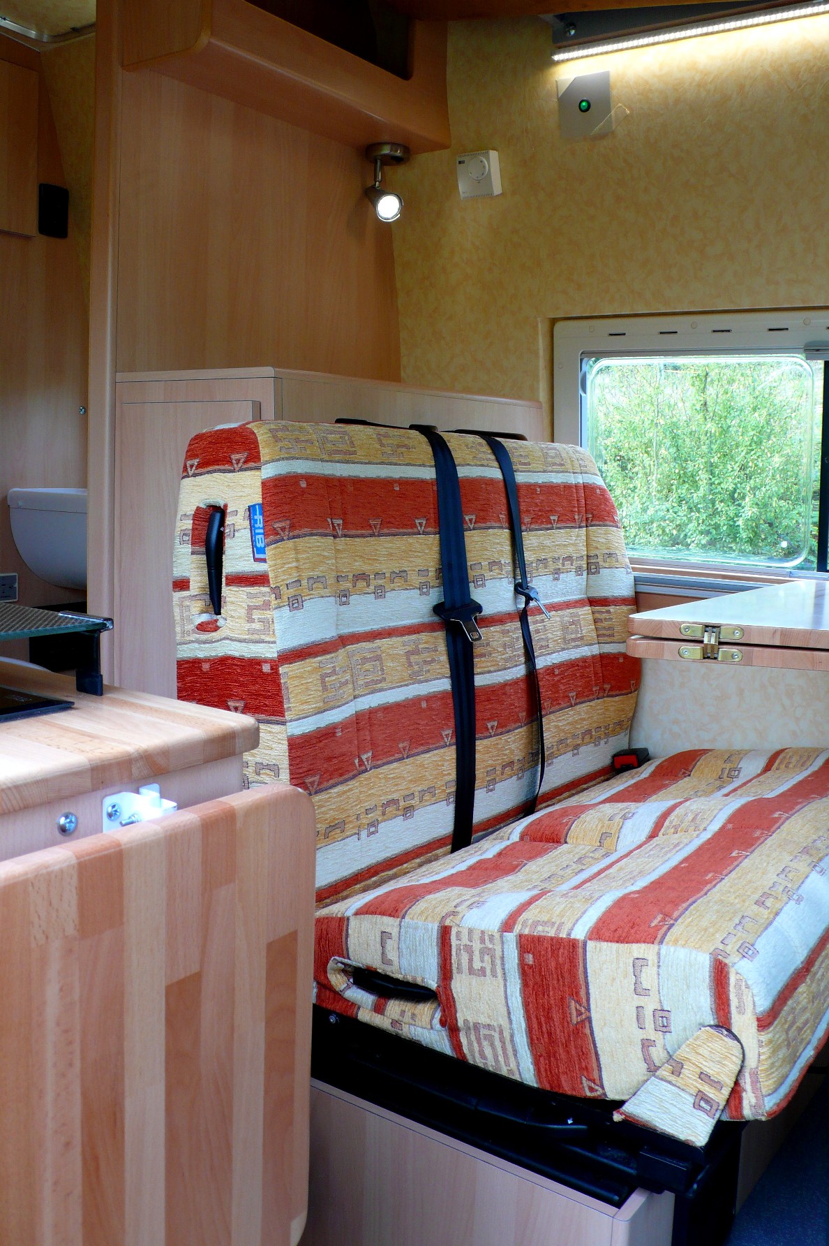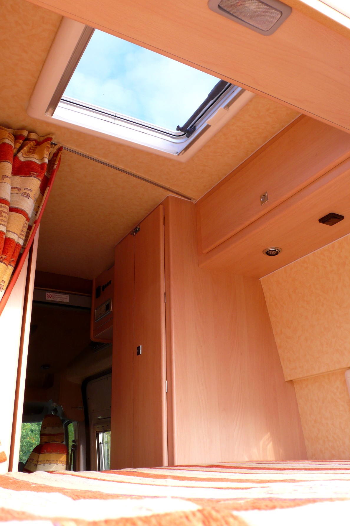 Position haute Position basse replié, Déplié Lit fait A priori, on est contents de l’aménagement, et les retours qu’on a disent que c’est du solide (Et oui! Les motifs de tissus d'un Iveco a vendre nous ont semblés familiers, Merci Guy pour le retour d'info