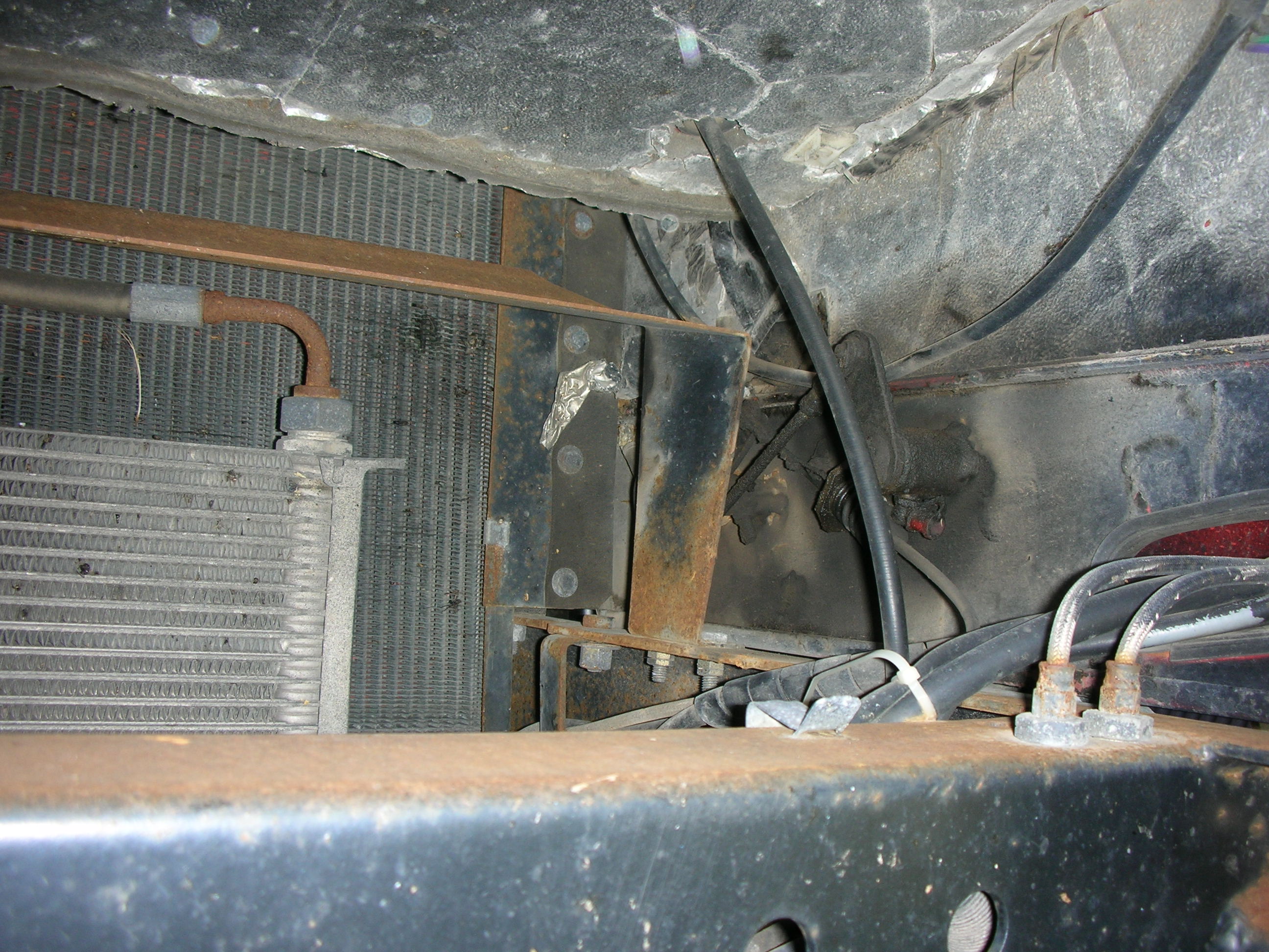 2/ Le radiateur est derrière cette paroi avec le frein à main (voir photo 2)