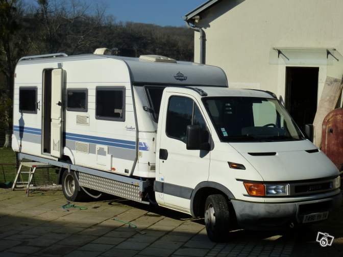 camping car a charge portée, idéal pour barouder, roues jumelée, ivéco 35c11,2,8l,turbo 110 cv, 2001,moteur qui ne fatigue pas,55000 km origines,la ceinture du plateau protege la cellule hobby modèle "excellent" le haut de gamme,5,2 m grand confort,chauffe eau truma 14 l, 50/70°,neuf,chauffage air pulsé, frigo trimix ,case -13°,,four m o jamais servi,grand salon avec vue panoramique ouvrante, convertible couchage double,chambre fermée 150x200m litterie neuve sommier latte,vaste soute 140x200x55 plus multiples coffres et caissons ,caméra sonore recul,,télé écran platav lecteur dvd ,et chaine hifi,homologué route 3, nombre de couchage 4 .panneau solaire;2 porte vélos