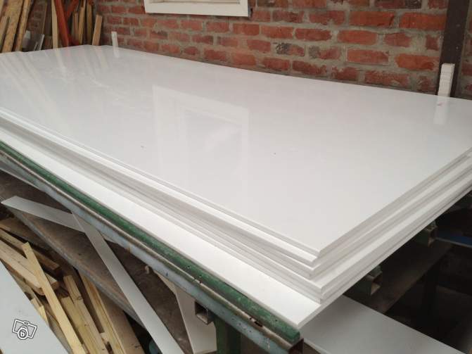 ça ressemble fortement aux plaques utilisées pour les cuisines et labo. Par contre faut les poser sur une structure, c'est très souple et sensible aux rayures ( j'ai doublé toute la cuisine du resto avec ça, en normes alimentaires. Montage sur les mêmes supports que pour du placo ).