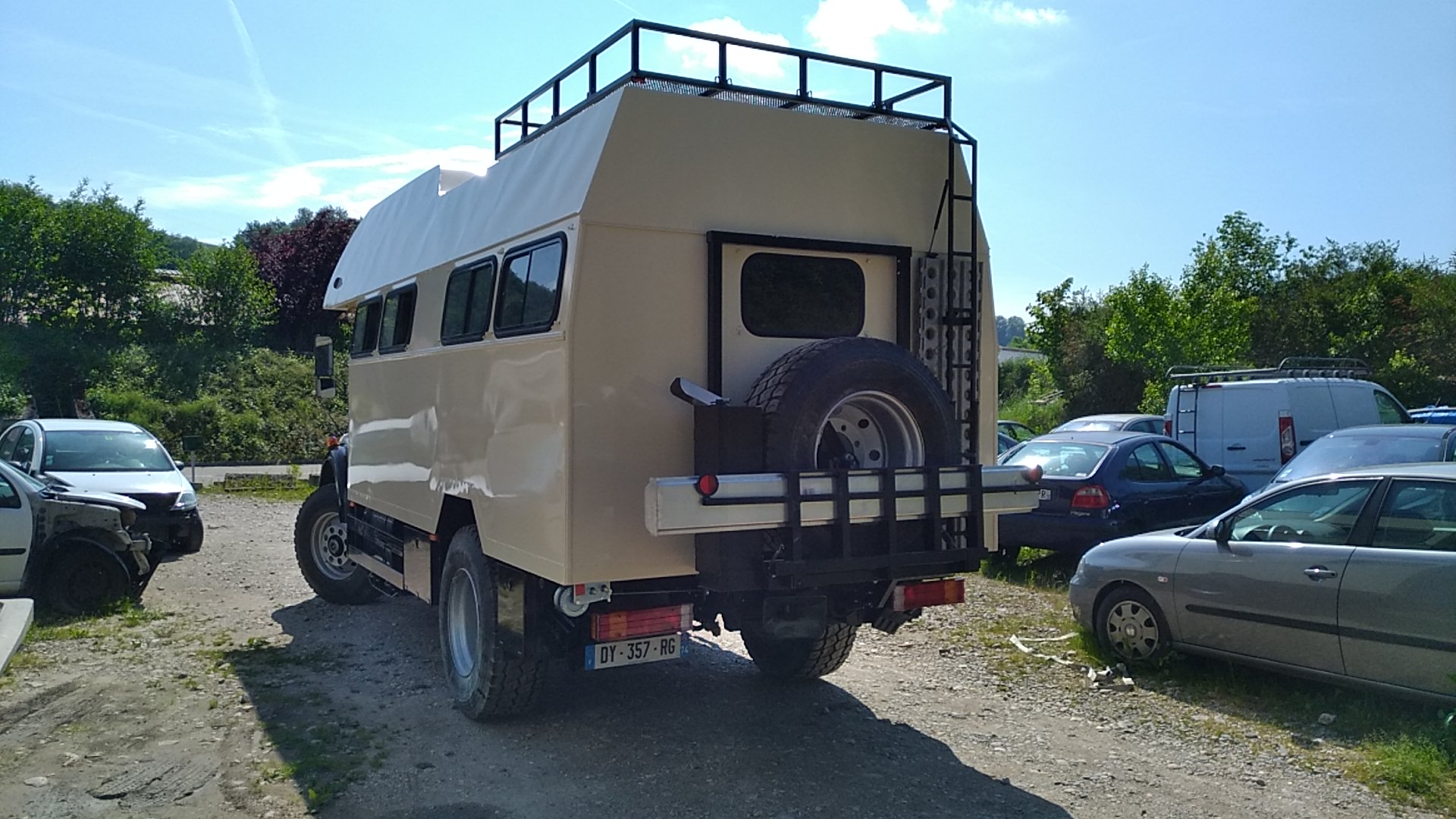 - Conception et fabrication d'une rehausse et capucine avec traitement anti-rouille, condamnation de la porte arrière, des trappes et d'une fenêtre - 8880€ HT