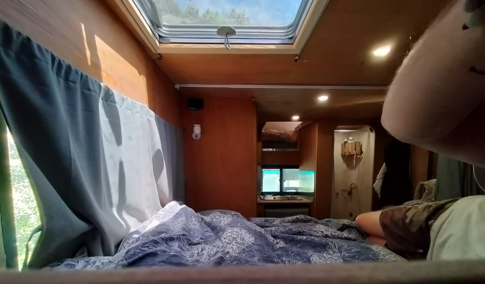 J'ai donc décidé de construire cette cellule, j'ai dessiné beaucoup de plan, et là c'était pas beaucoup plus grand mais je tenais debout, tout le matériel de sport que j'aime bien avoir avec moi été/hivers rentrais et j'avais tout l'équipement de confort que je voulais. Tout me plaisais dans ce projet et c'est à mon sens le moteur le plus important d'un projet comme celui là. Donc je me suis lancé et ça a marché.