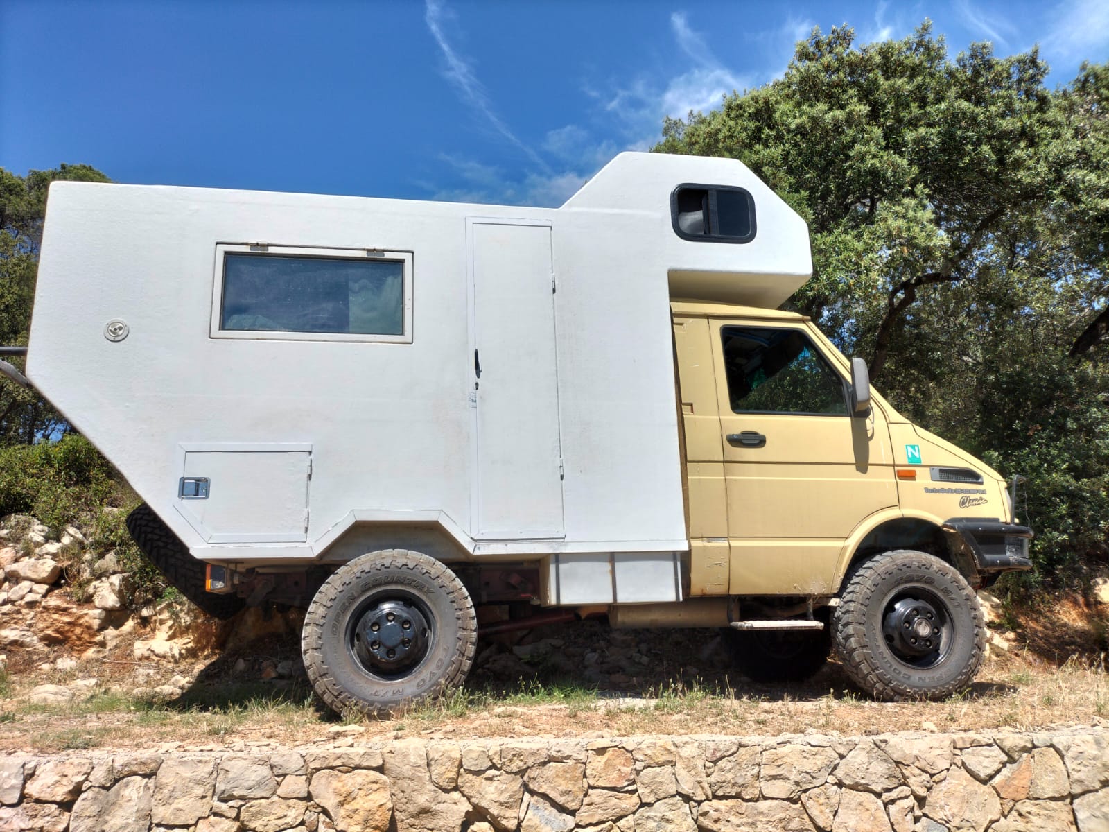 Alors le choix de fabriquer cette cellule ne s'est pas fait sur un coup de tête, j'ai acheté cet iveco h1 , puis j'ai commencé a faire des plans, je savais exactement ce que je voulais a l'intérieur de ce camion et ça ne rentrais pas ! J'ai d'abord essayé de trouver un moyen de coller une réhausse en fibre de h2 mais j'ai rien trouvé qui me convenais. Il y a des renfort d'origine en métal, ça doit être faisable mais je l'ai pas senti.