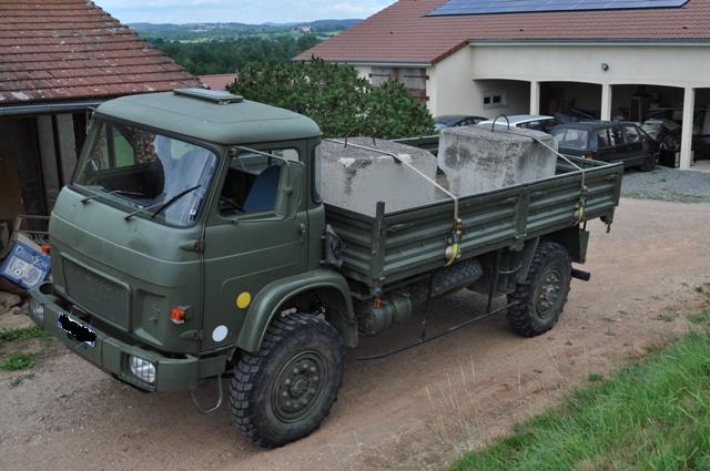 oui c'est bien un ancien de l'armé de l'air(de dijon éxactement) avec une assitance d'embrayage pneumatique(qui sera démonté prochainement car elle c'est mise a faire un bruit d'abreuvoir a cochon),je le redit car quel plaisir dans les cailloux quand ça saute de pas avoir a ce cramponer au volant pour débrayer et sur la route n'en parlont pas surtout que je viens d'isoler le sol la cabine avec de la laine de roche et du tapis de sol de vaches(pour réster dans le registre basse cour)en caoutchouc de 2cm d'épait récupéré au démontage d'une écurie quel silence on entendrai prèsque les mouches volées a 80km-h je méterai des photos dès que j'ai le temps