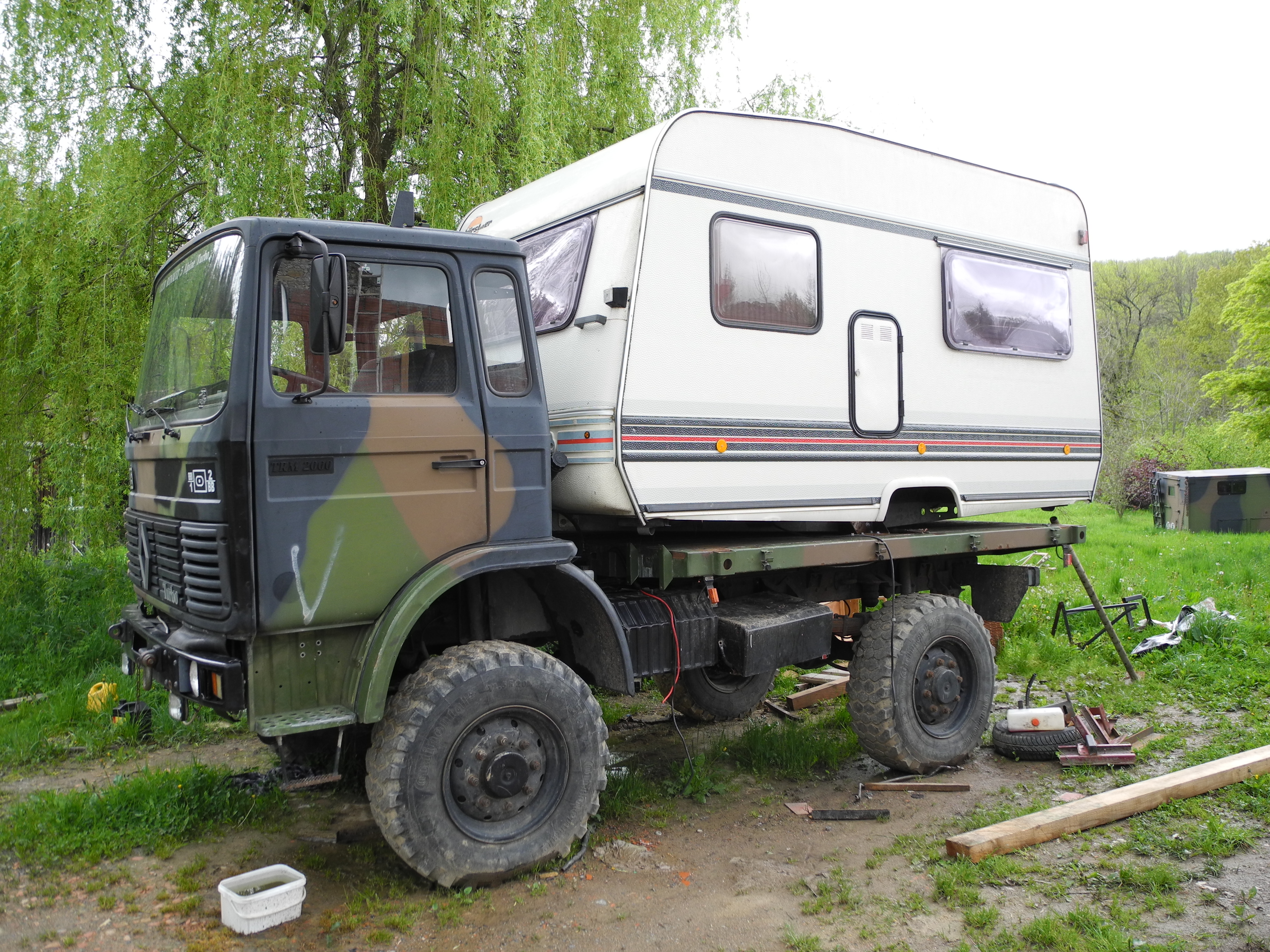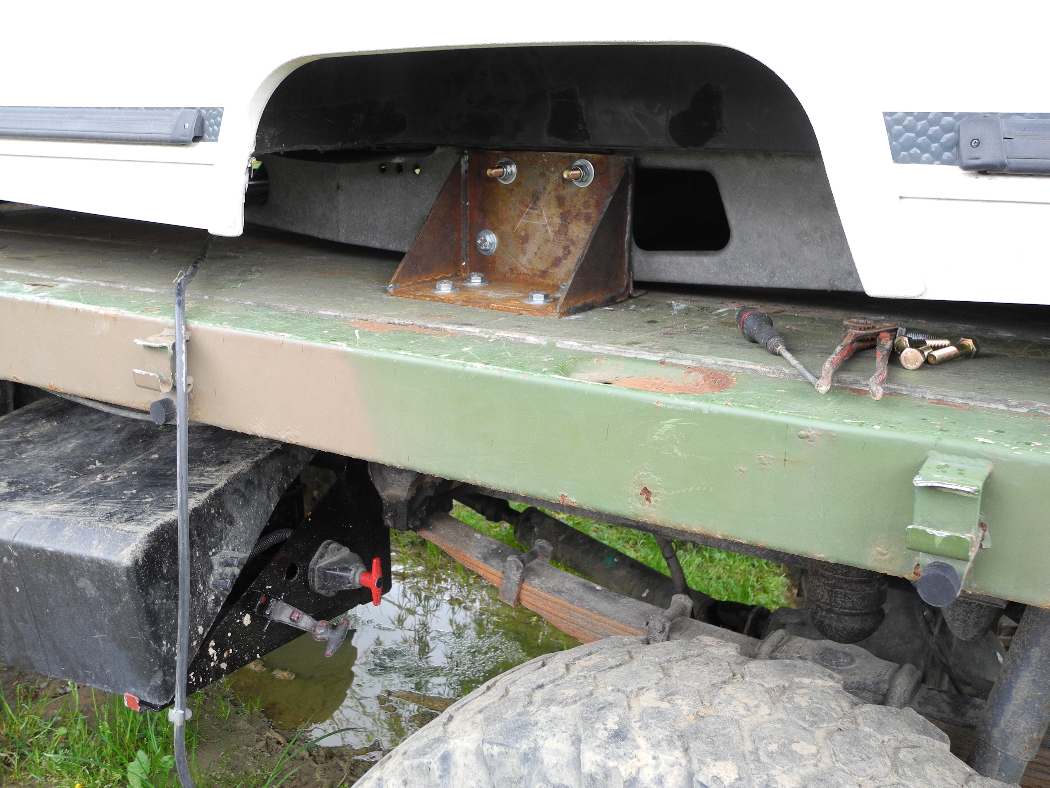 donc sa y est la caravanne est fixer sur le plateau,il me reste a finirde monter l'eberspacher et faire la douche.......