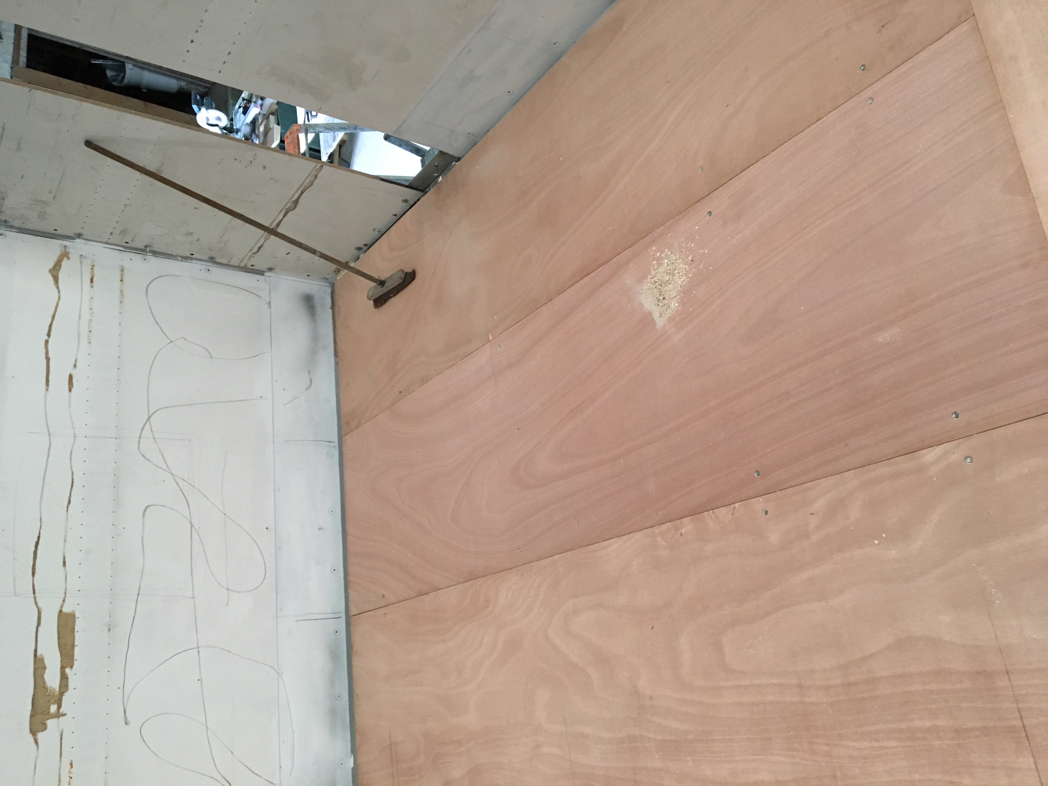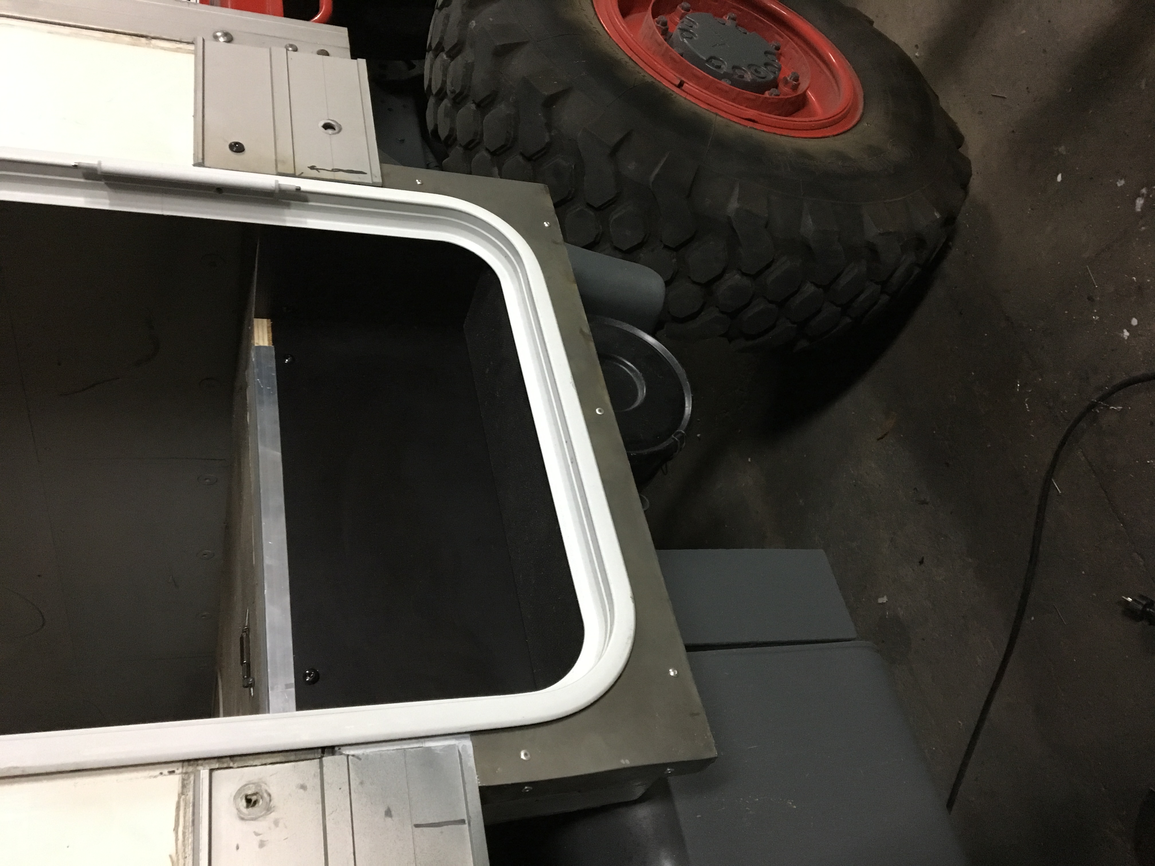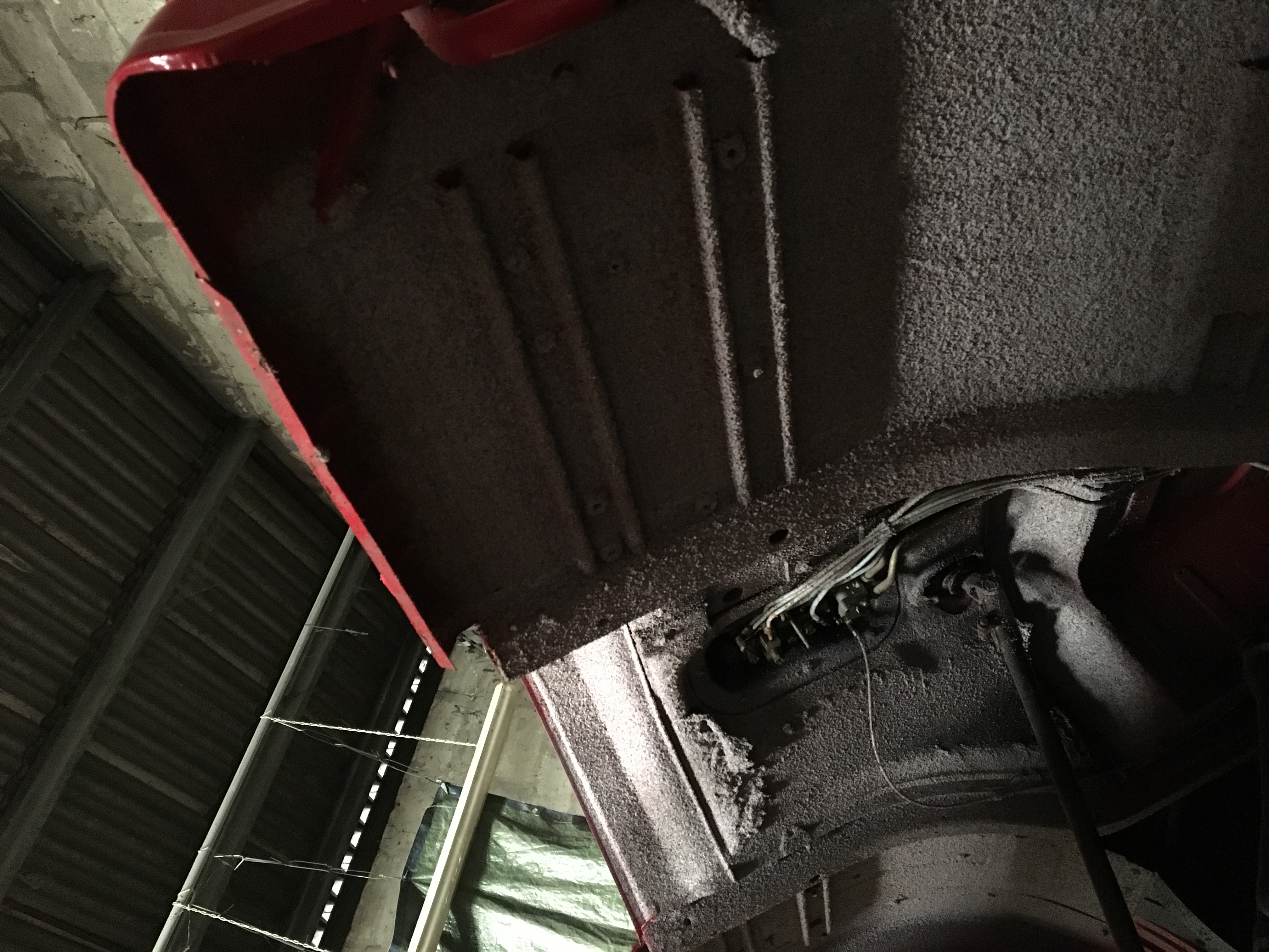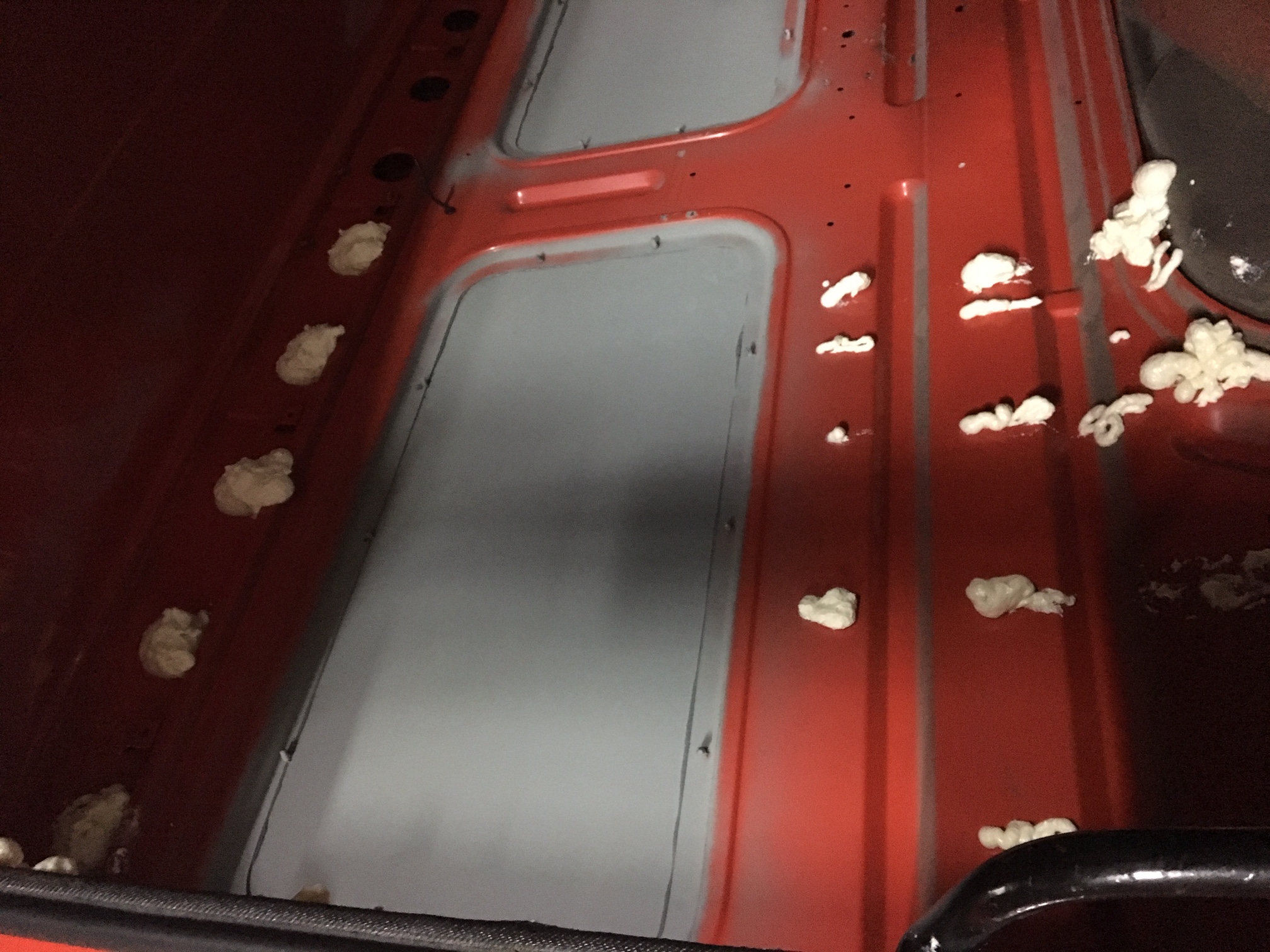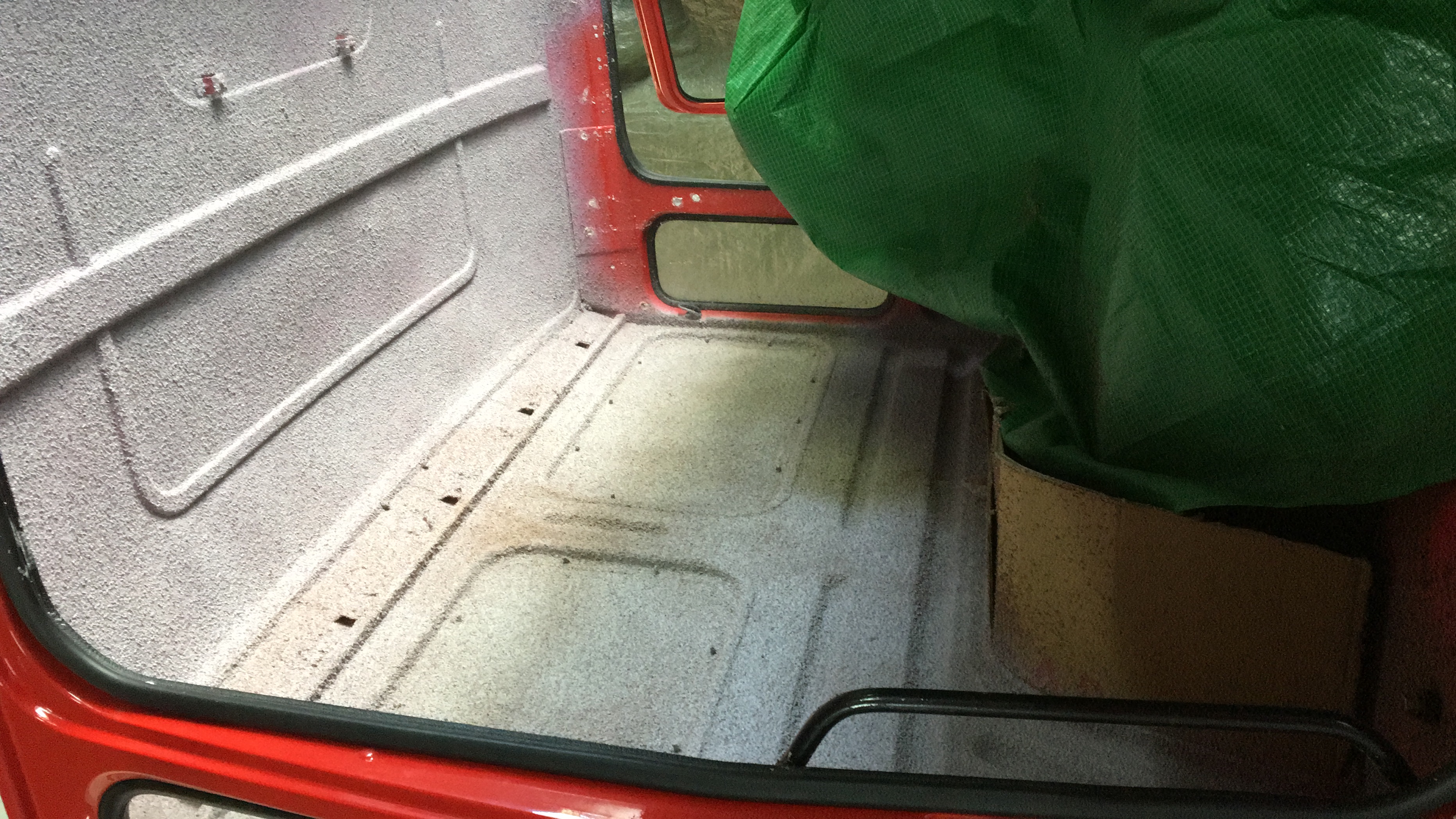 on avance .... Plancher , trappes de visites , démontage vitres cabine et remplacement par deux tôles , remplissage des creux de la cabine en mousse expansé , et une première couche de liège projeté demain la deuxième, et un petit tour sur la route ....