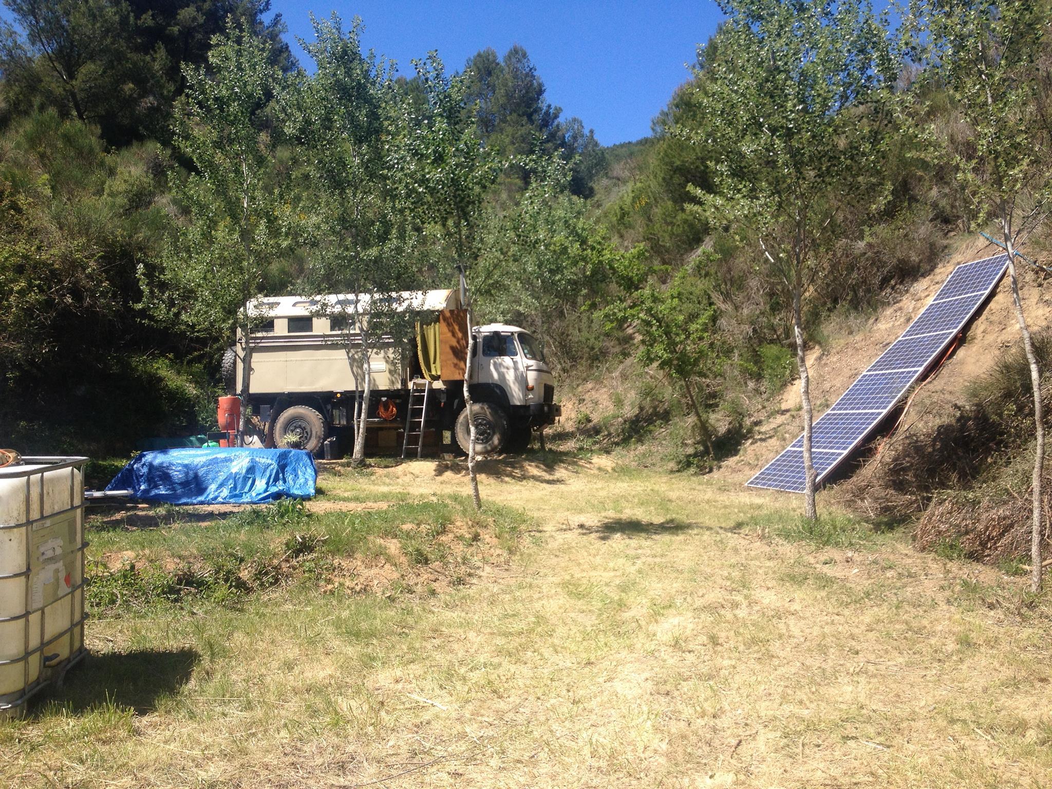L'installation que j'ai pour vivre posé sur un terrain c'est 6 panneaux solaire de 150w en 24V (je compte les vendre pour avoir 6 en 250w)