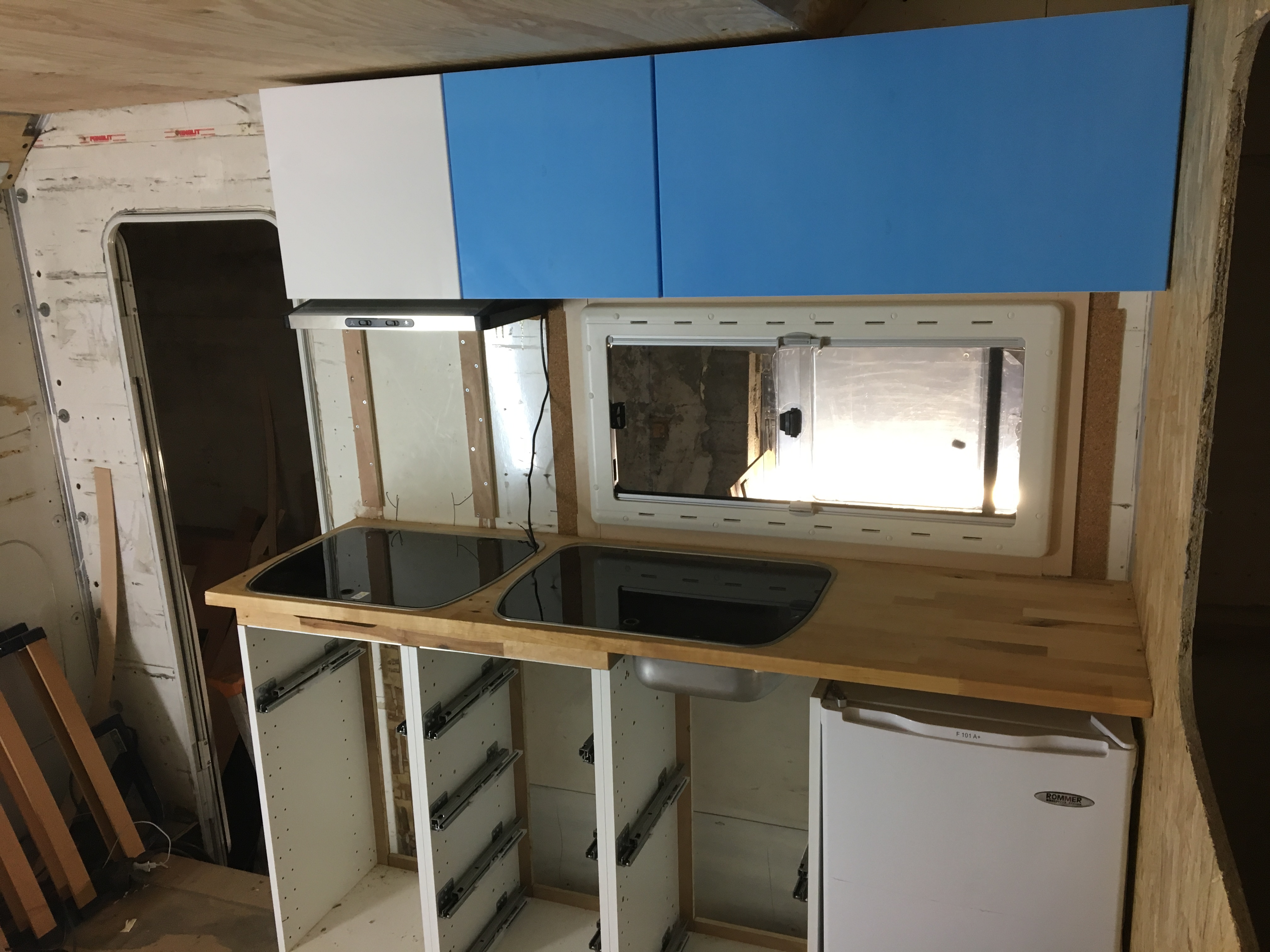 Ça avance .. pose cuisine , des deux baies cuisine et chambre , week-end prochain je tire tous les câbles , avant de faire l étanchéité du toit en EPDM
