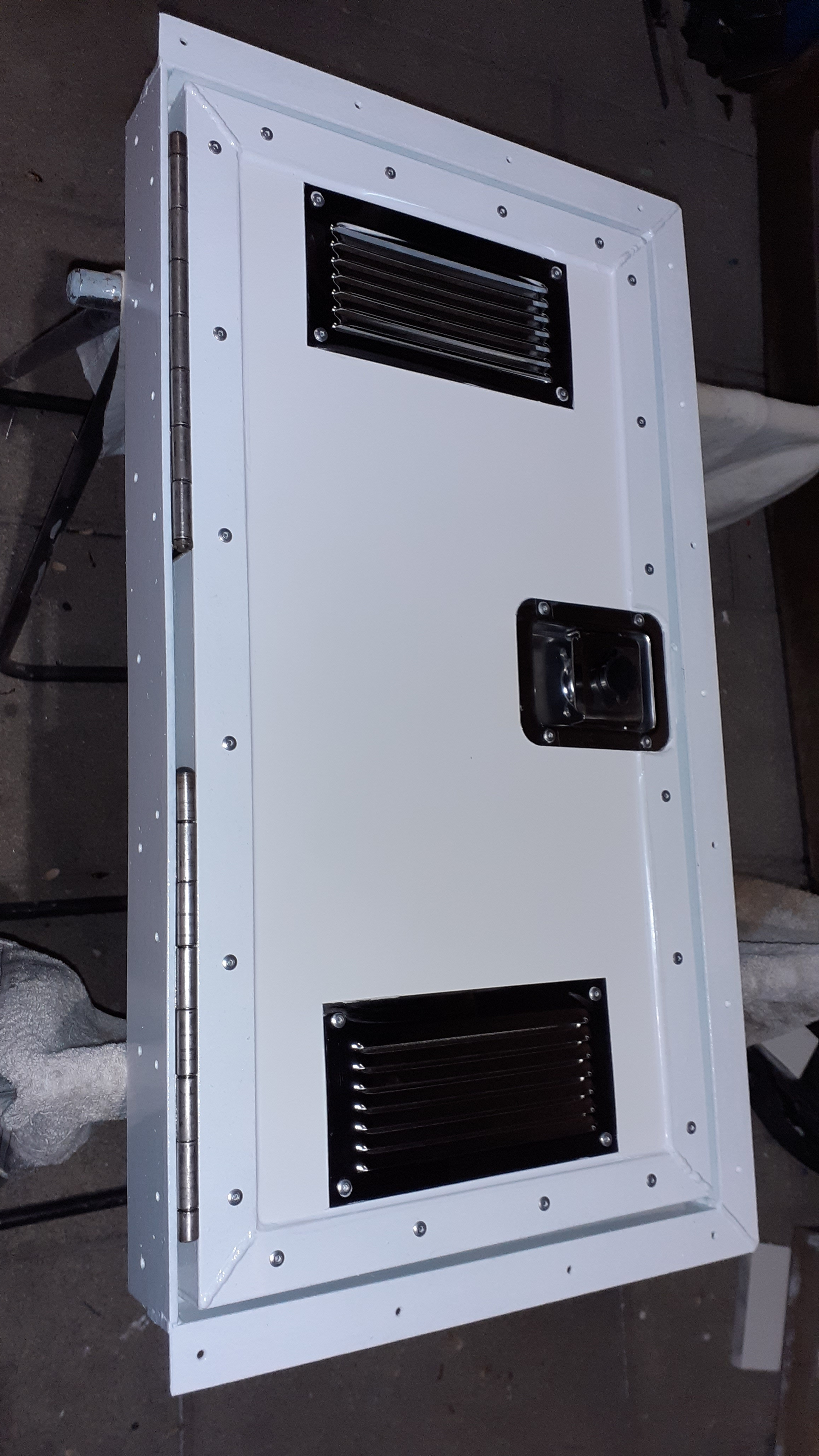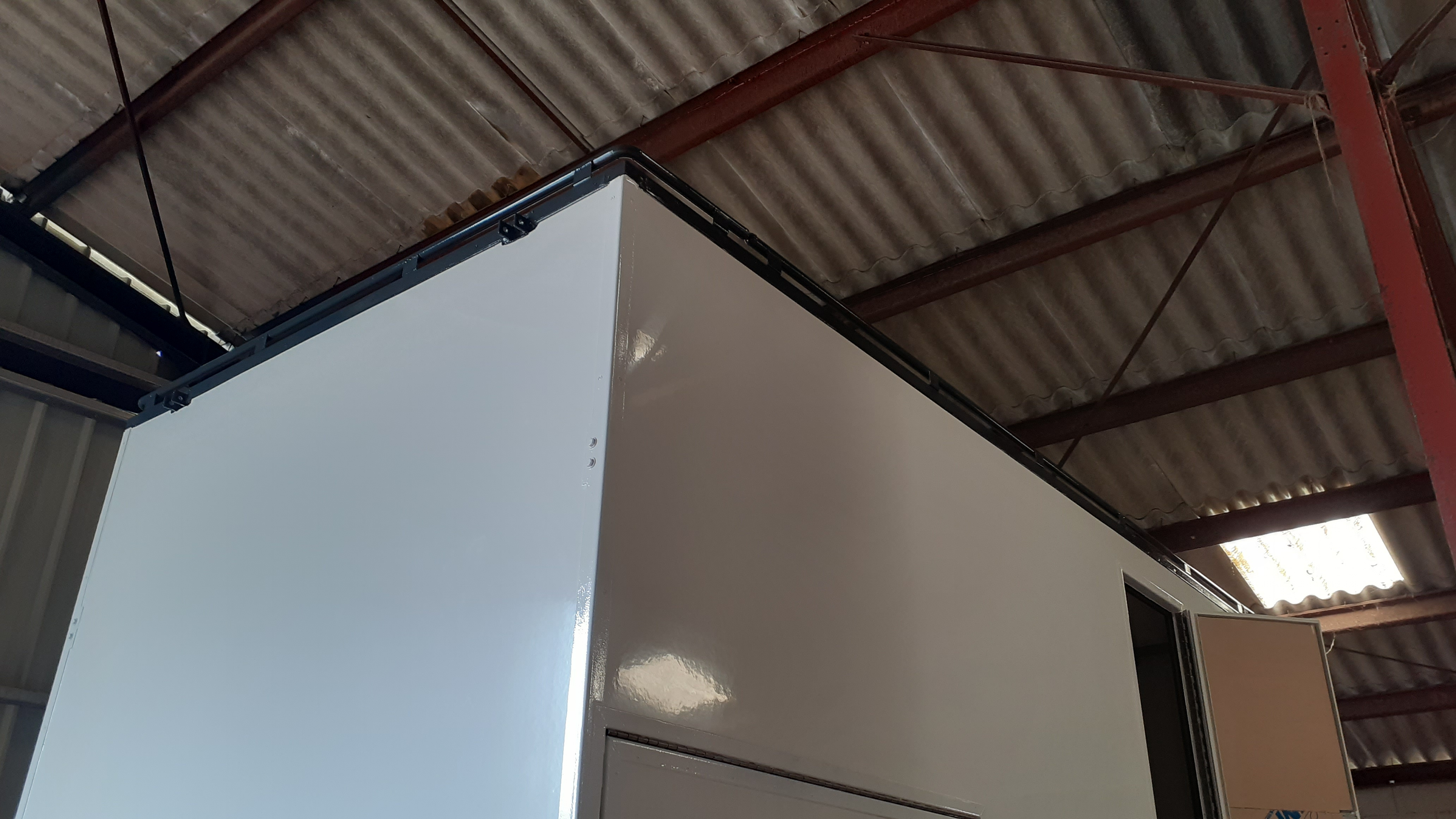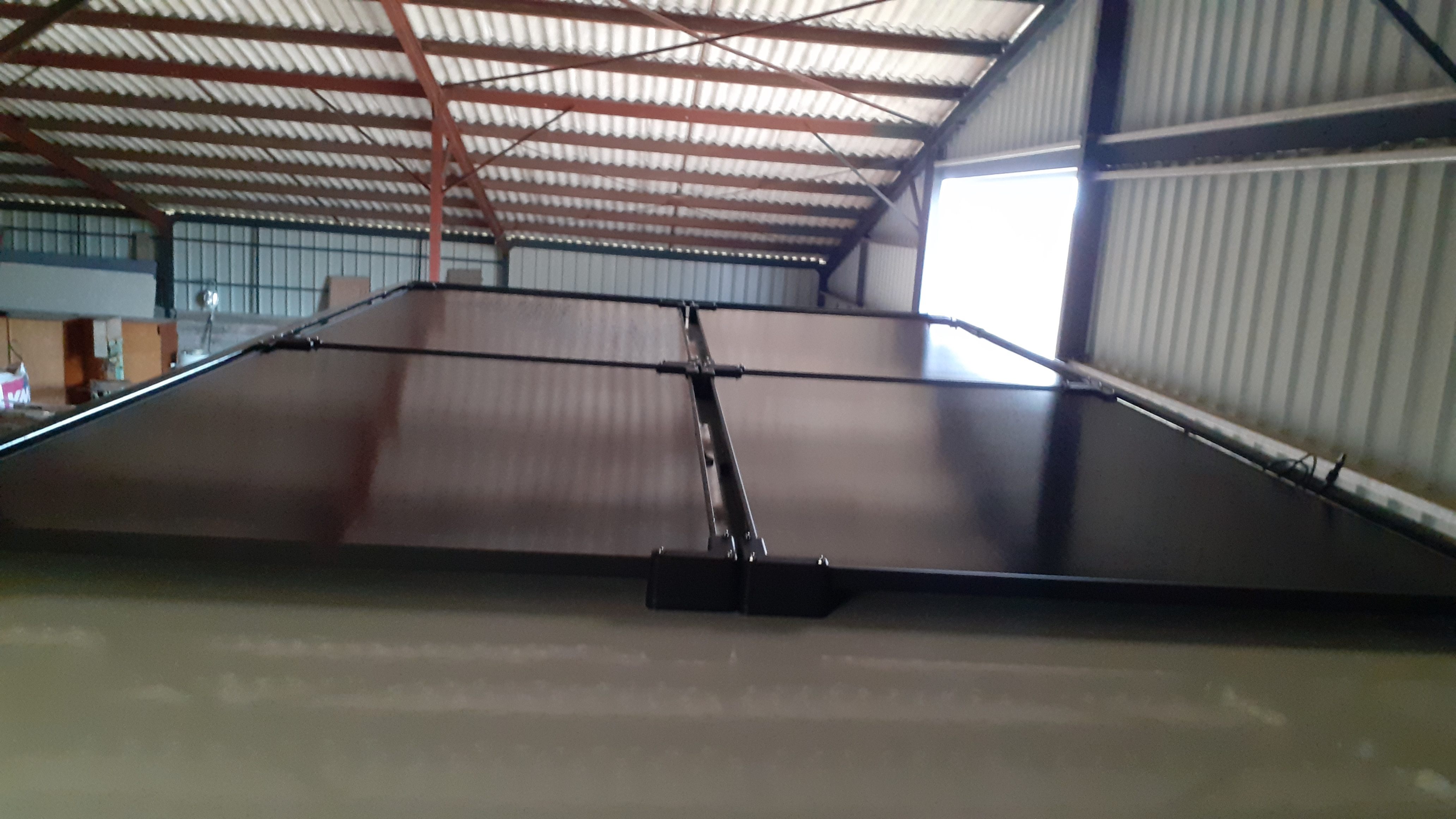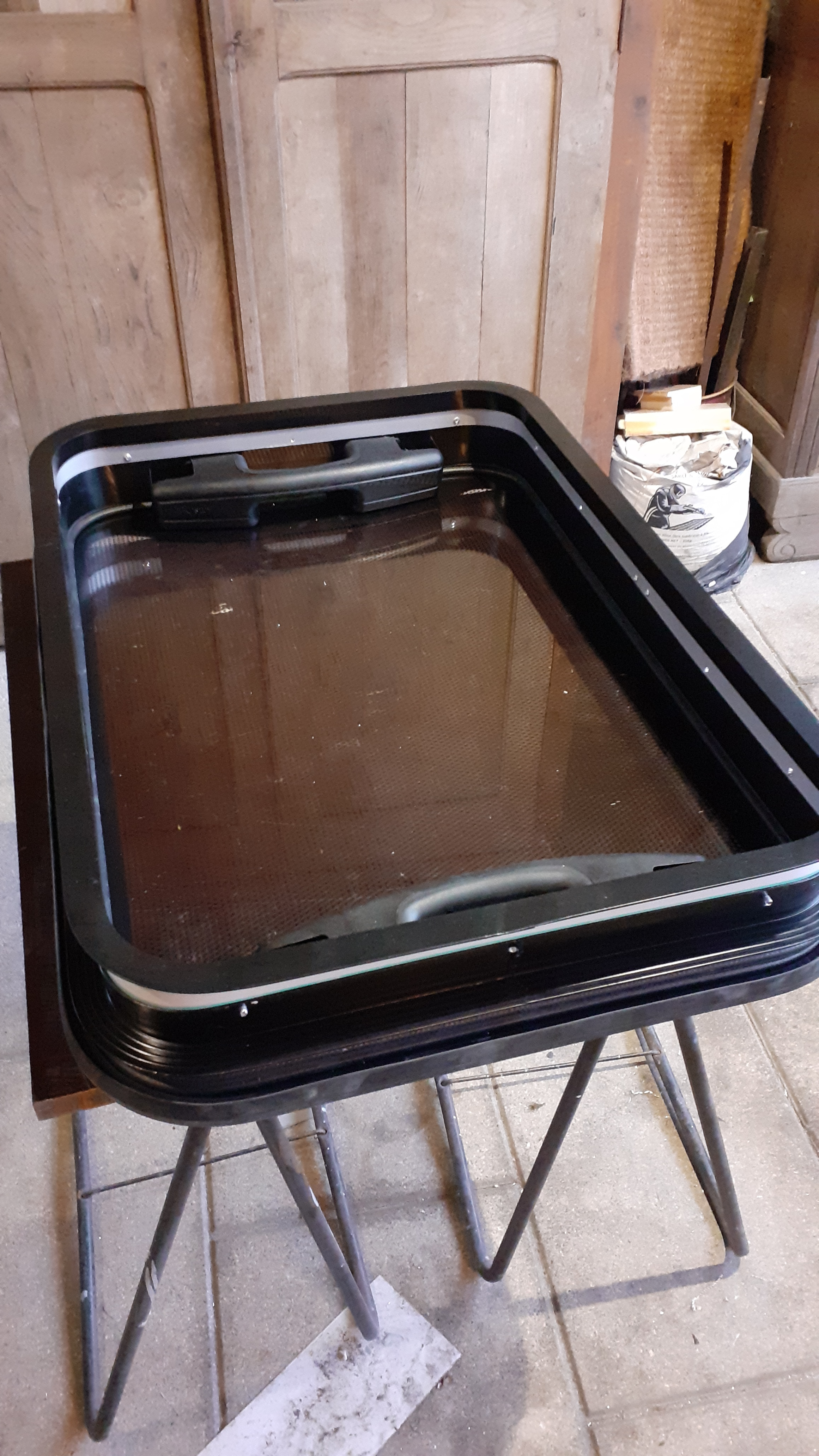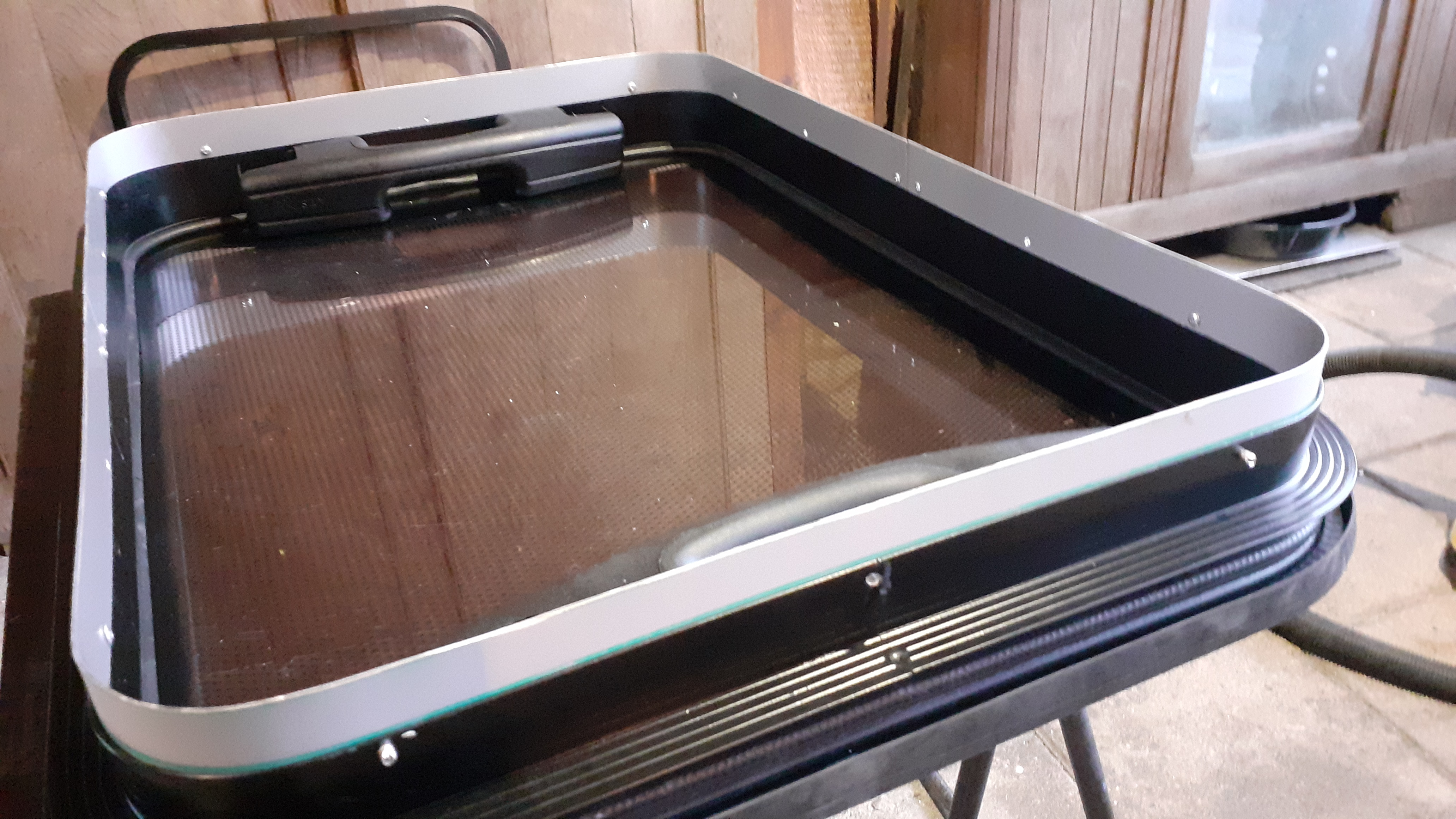 Fabrication et pose des pare-branches sur le toit pour protéger les panneaux solaires (3/4 de la surface du toit) et le lanterneau + fabrication et pose de la porte réglementaire du coffre bouteille de gaz étanche (étanche pour la cellule, mais ventilé sur l'extérieur ).