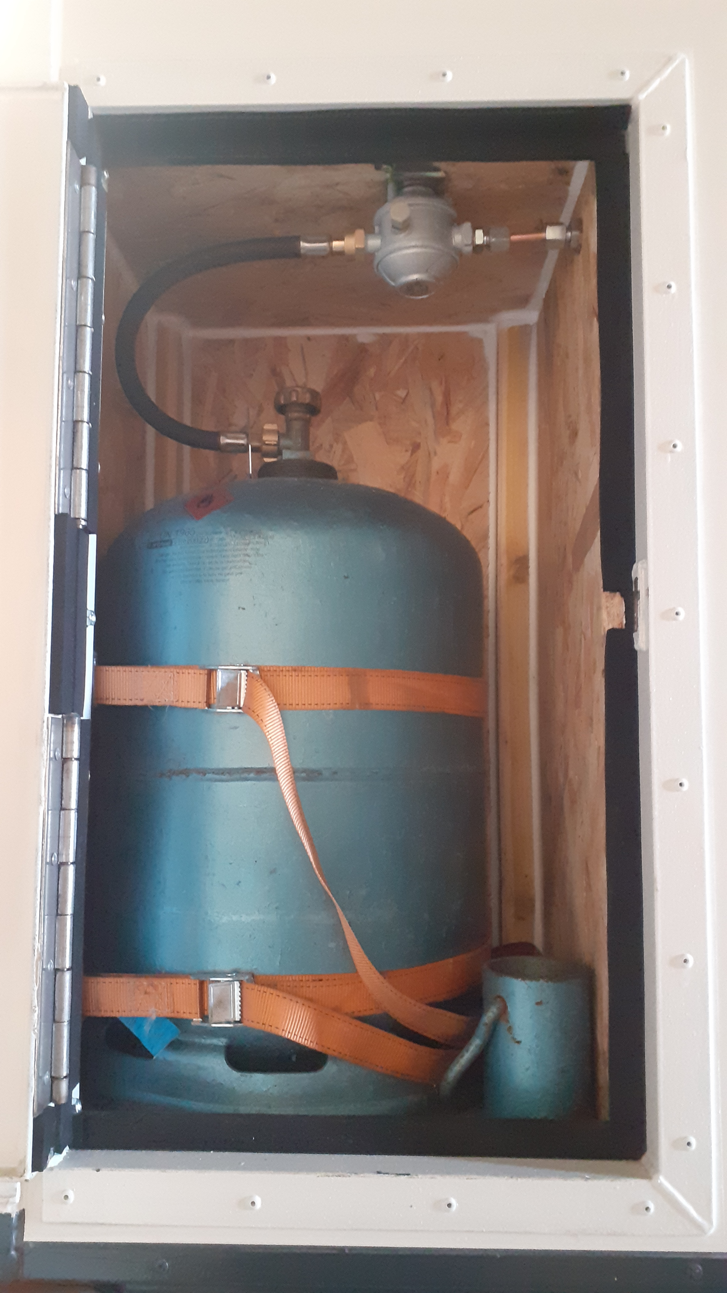 fabrication caisson étanche bouteille de gaz (cuisson uniquement, avec 13kg on devrait passer un an ou deux ans avant de la changer). Le format US de 20 lbs rentre parfaitement, juste un peu moins haut, faudra juste changer le raccord)