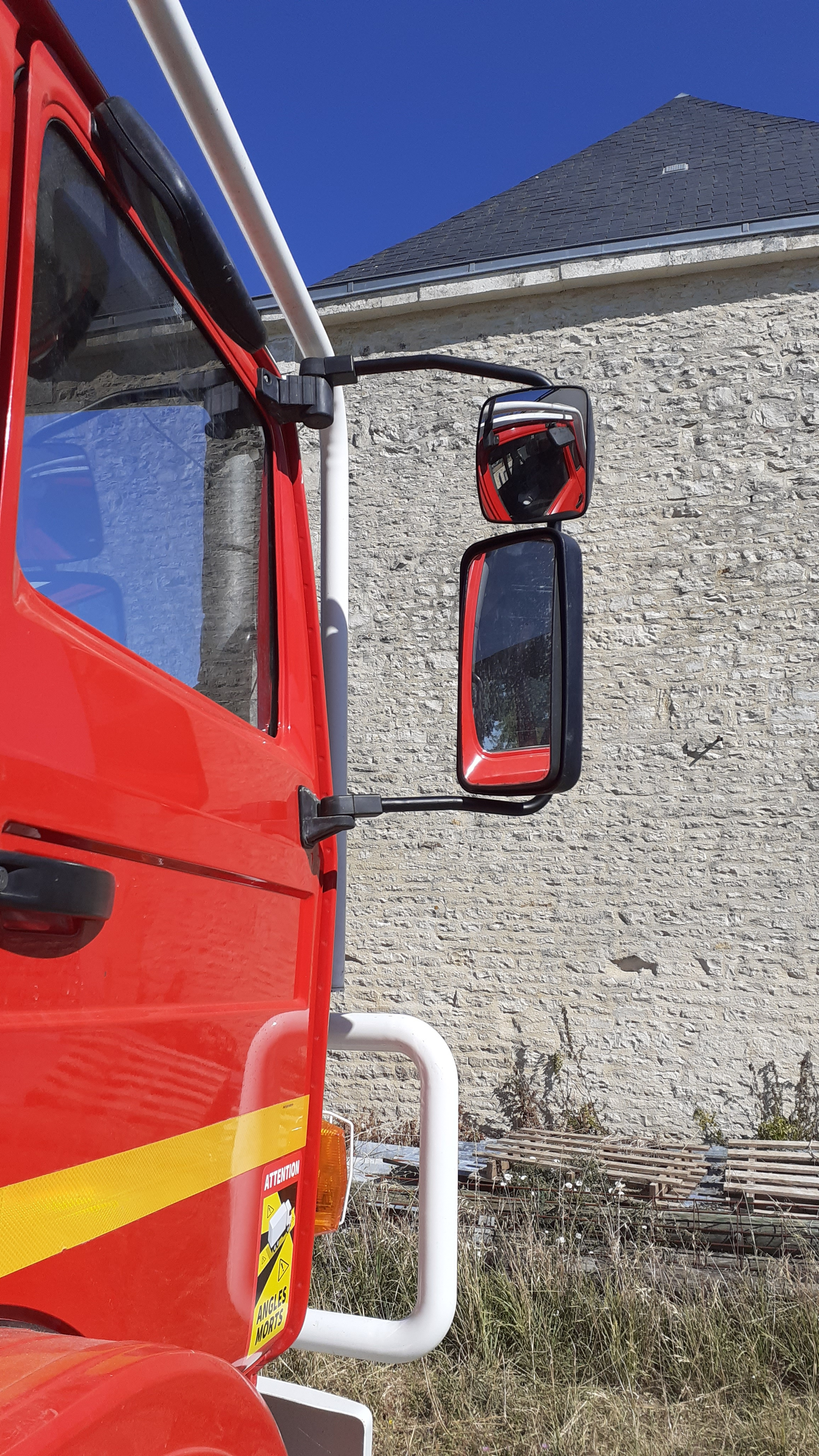 Mon carrossage en cellule habitable est plus large que l'équipement incendie d'origine. Mauvaise surprise on ne voit plus grand chose dans les rétros et ça posera problème au contrôle technique semaine prochaine.