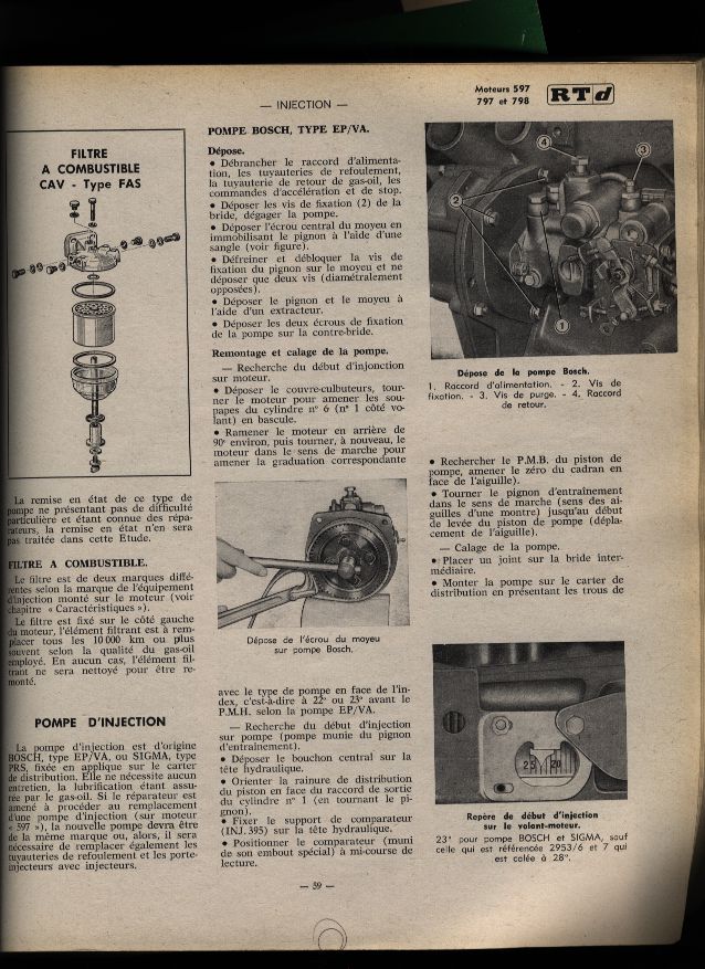 CALAGE POMPE INJECTION ROTATIVE SAVIEM 798
