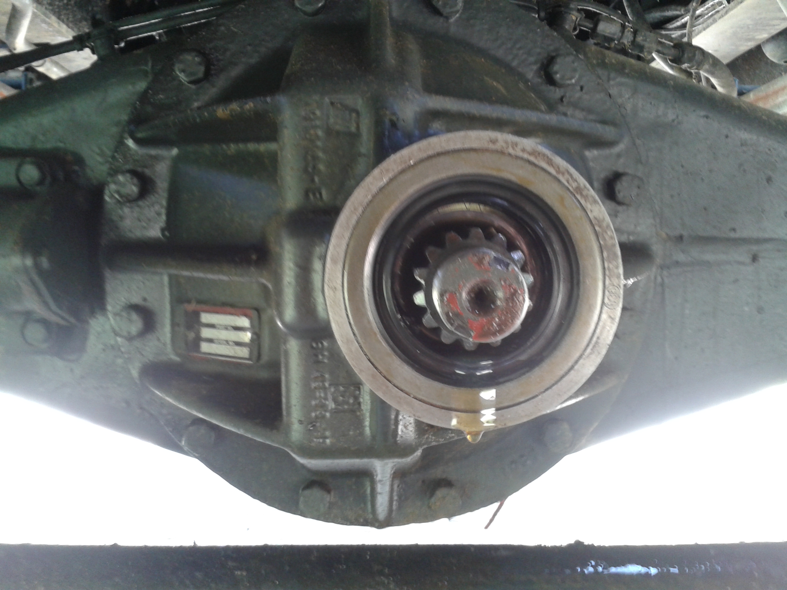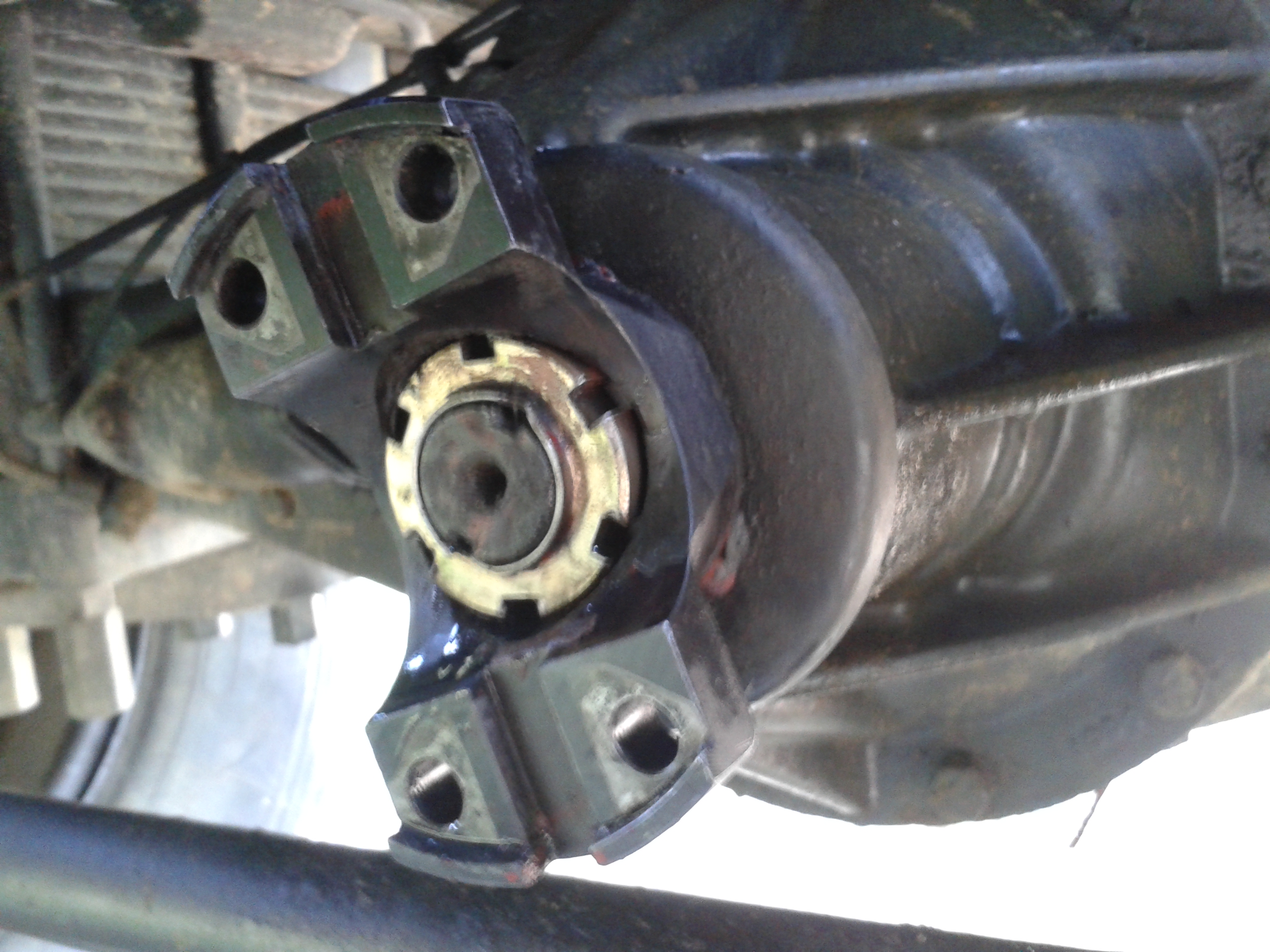 En voulant nettoyer mon nez de pont pour faire des photos j ai remarqué que l ecrou qui tient la coupelle d accouplement de l arbre de transmission et complètement desserré j ai pu le defaire a la main