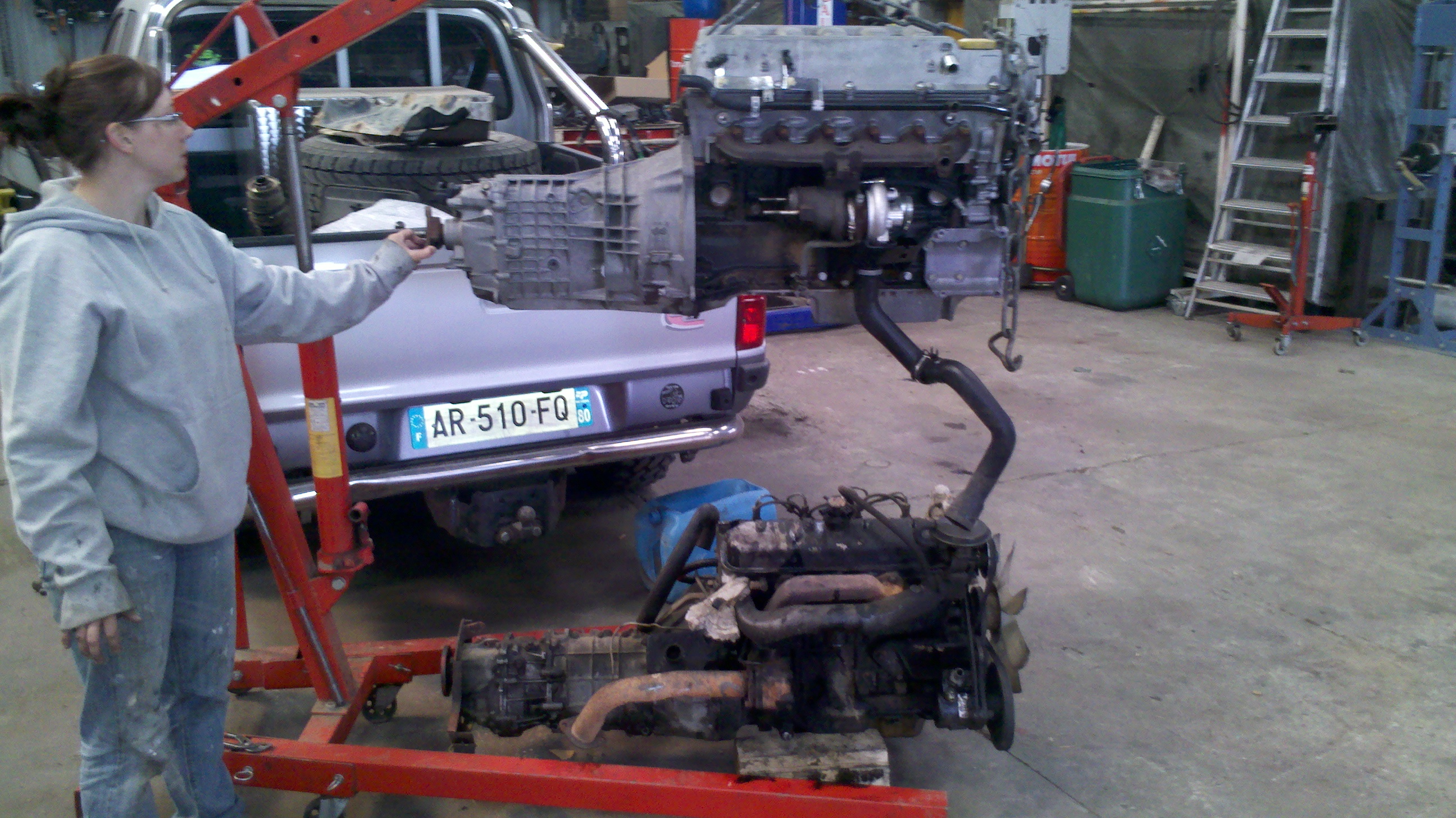 Houlalalalala chips , j'ai découpé la traverse et j'ai fabriqué le bodylift sinon il passait pas le BMw ( je ne voulais pas transformer la cabine , déjà bien difficile a aménager comme ça ) ... c'est le problème du double cabine , sur le simple cab ça rentre comme un gant ( enfin une moufle je veux dire