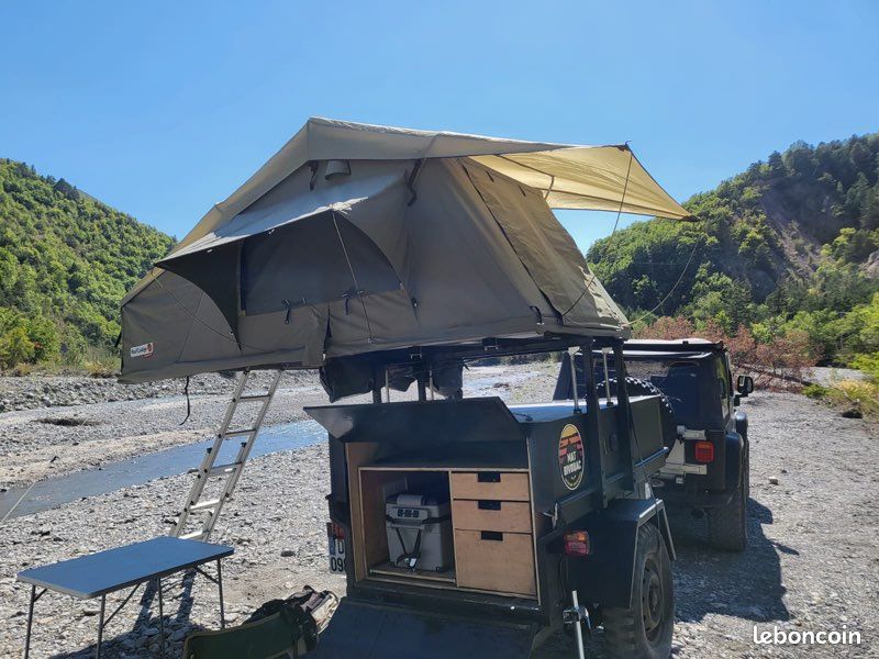 "Cette remorque Bantam 4x4 de l’armée américaine a été rénovée et toute aménagée pour votre plus grand plaisir pour passer des nuits magiques à la belle étoile en 2022. Nous la vendons pour cause de changement de projet, beaucoup d’amour a été mis dedans pour sa rénovation.