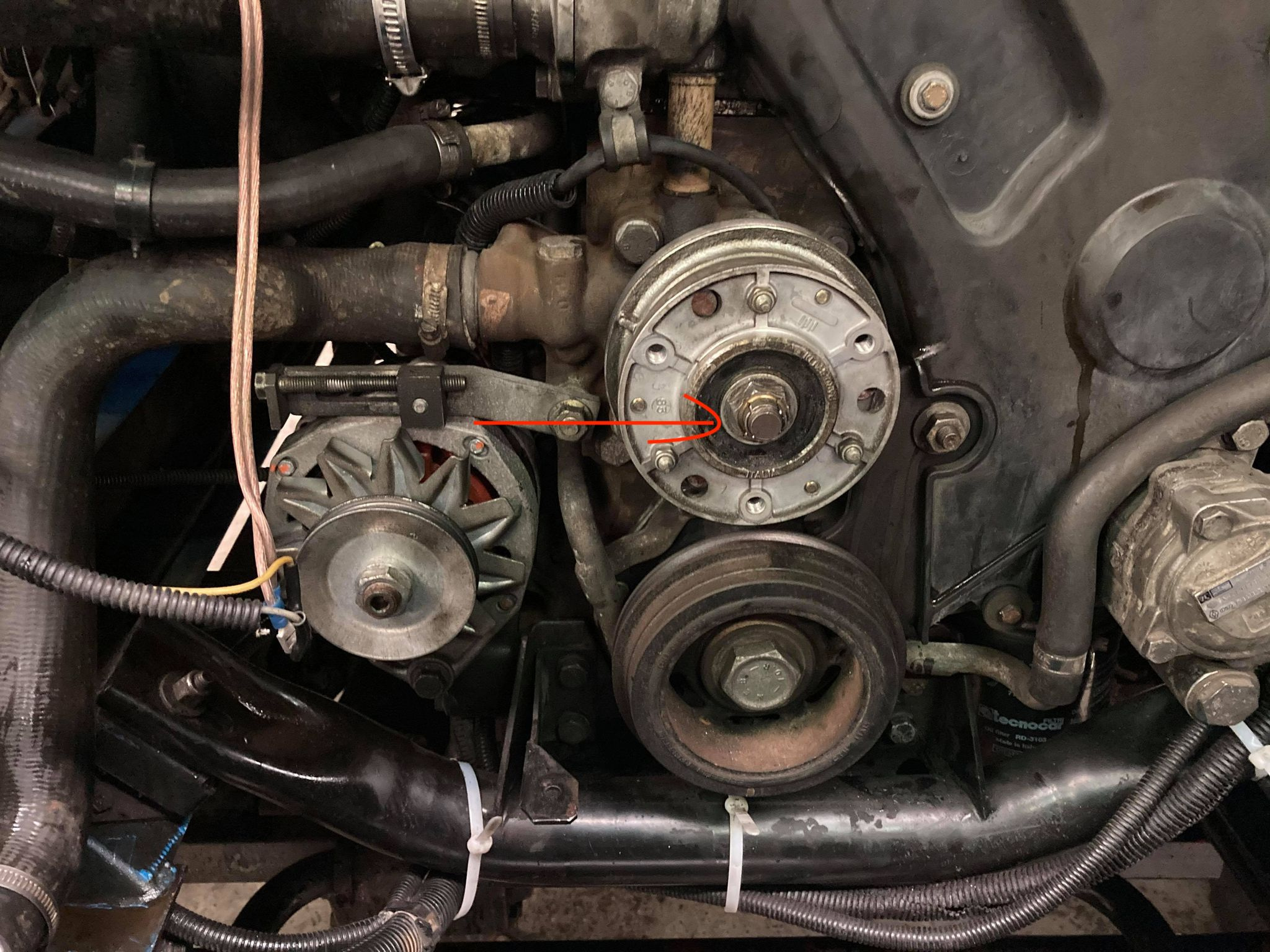 y a aussi le roulement du coupleur electromagnetique, mais si il etait mort, y aurais du jeu entre le coupleur et la poulie de pompe a eau....