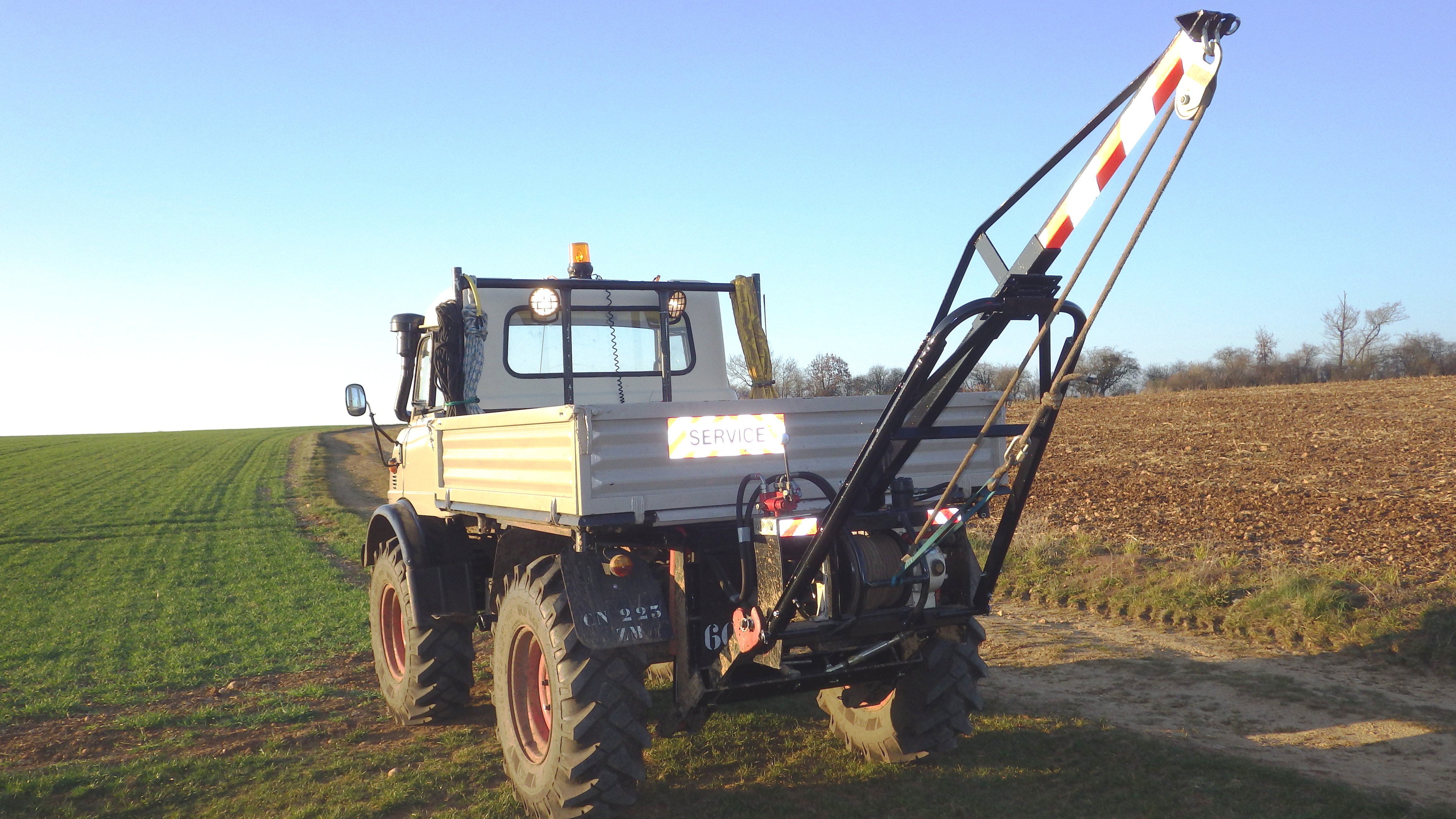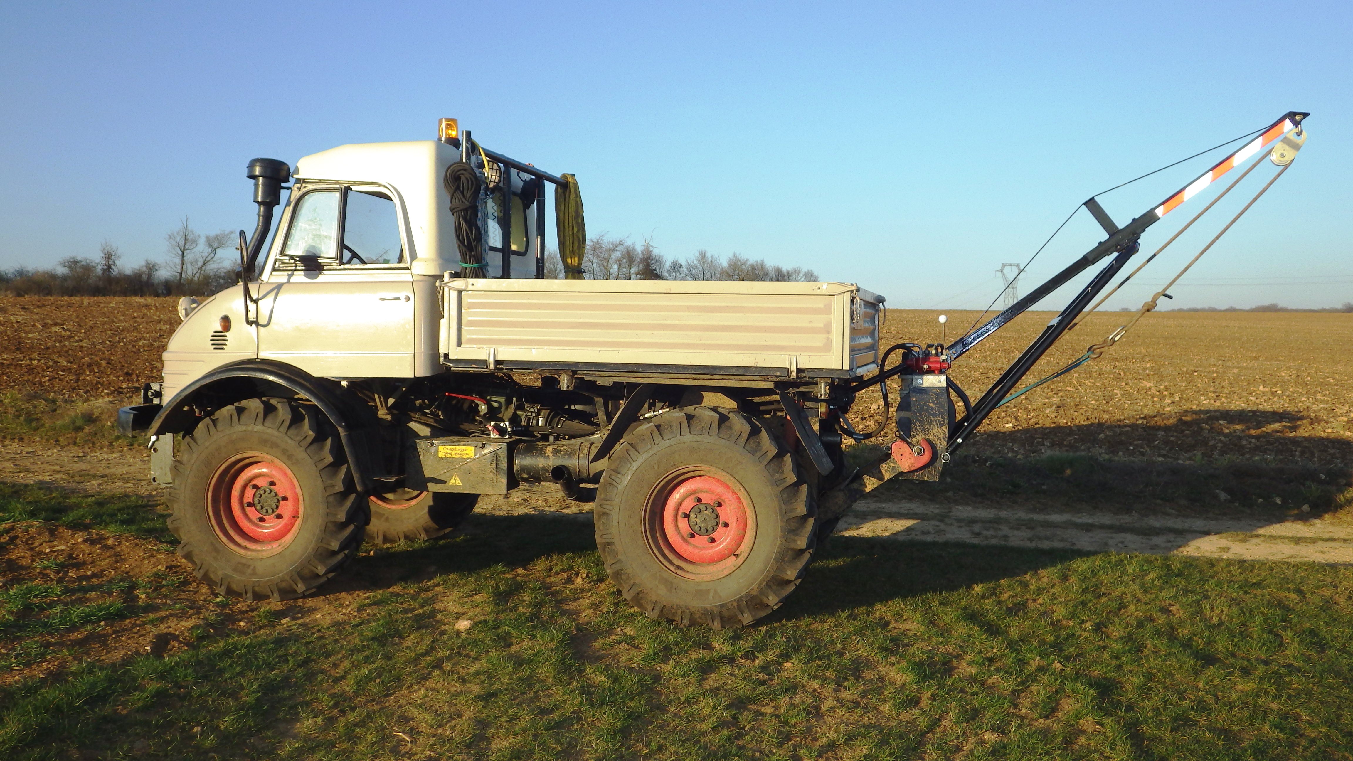 Ce qui est bien sur les Unimog c' est que l' on peut monter pas mal d' équipement : Lame ou fraise à neige , treuil grue , foreuse........