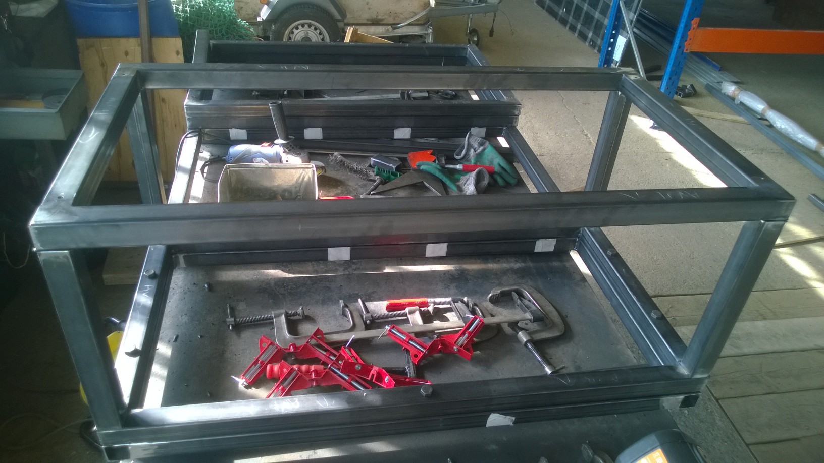 - "cage" des réservoirs eau propre : soudée, peinte et remiée en attente de montage quand il sera l'heure (400L en partie isolée)