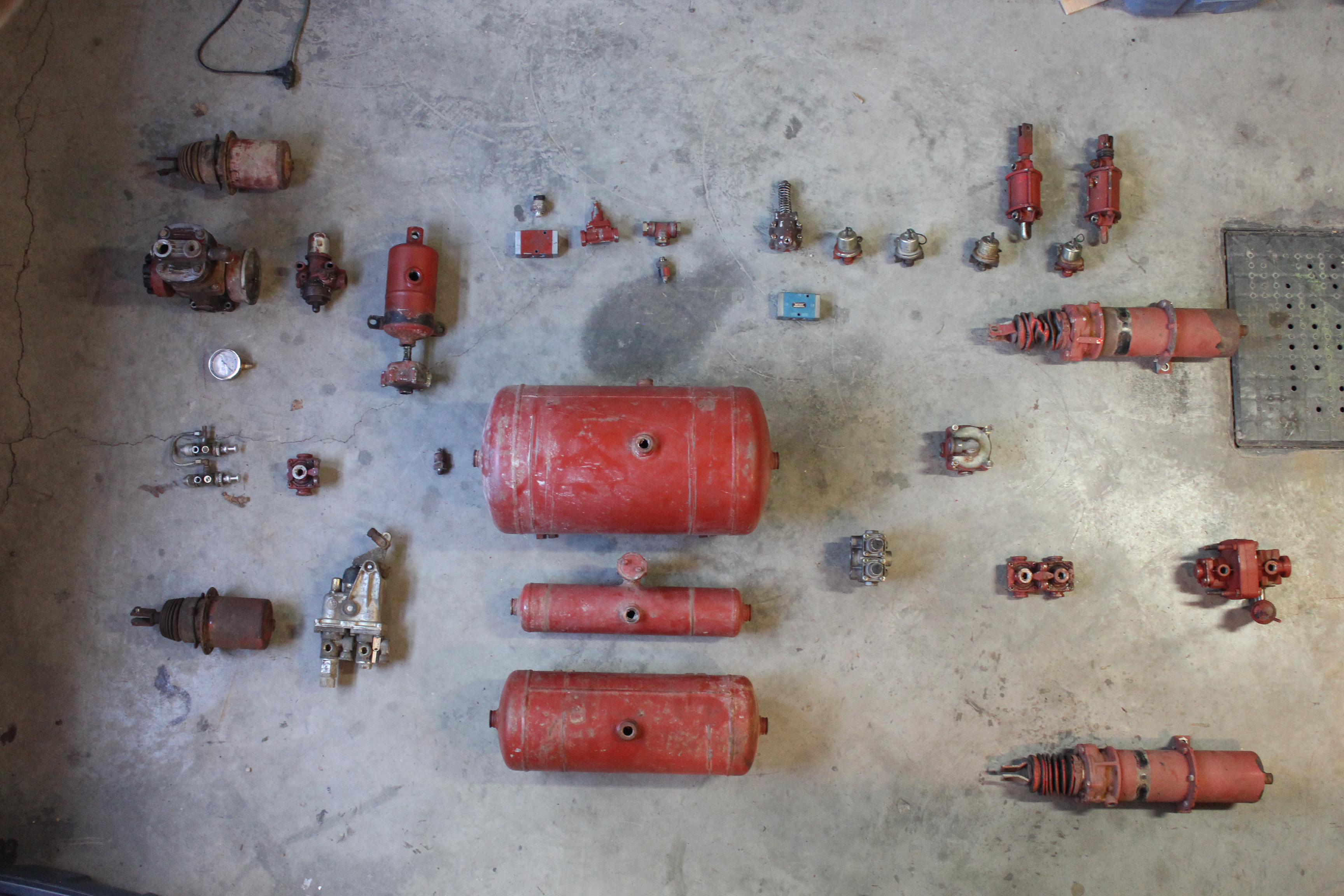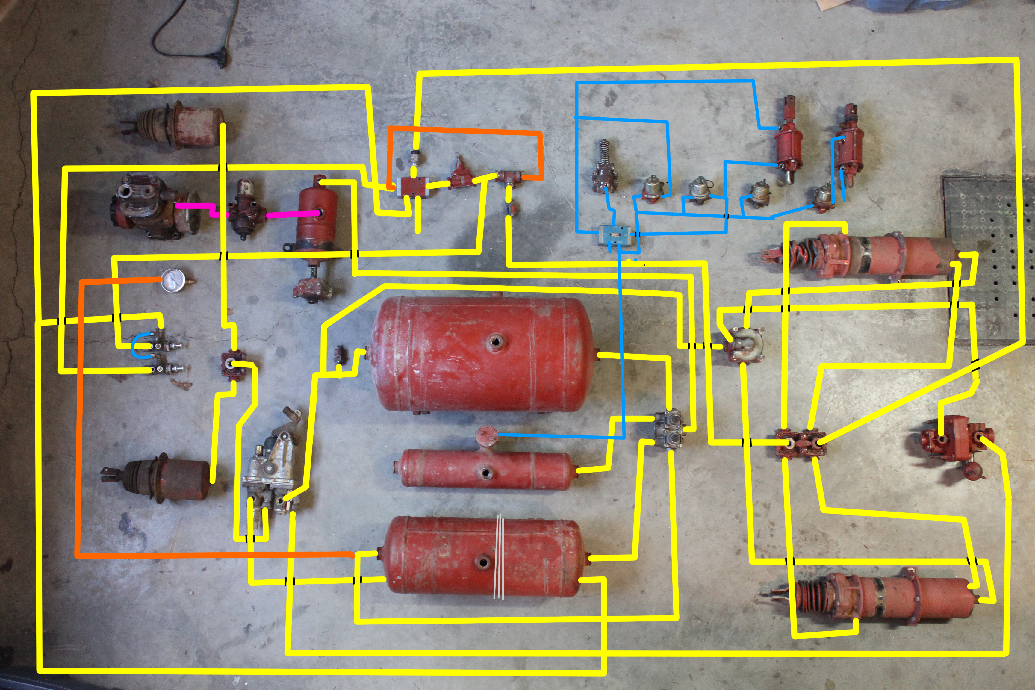 Un système complet de freins à air, vue éclatée, pièces détachées ! Et ce que ça devrait donner une fois remonté