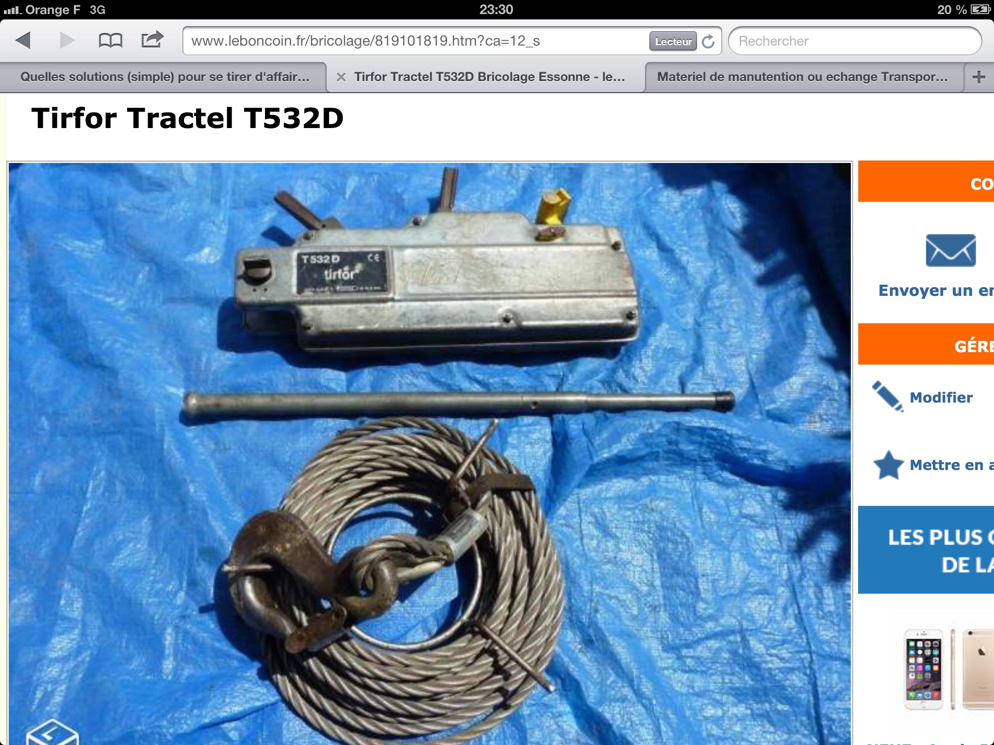 Pour le tirefor en 3,2, il ne doit pas être facile de moufler vu que le câble fait 16 mm de diamètre et pour le courber, voilà !