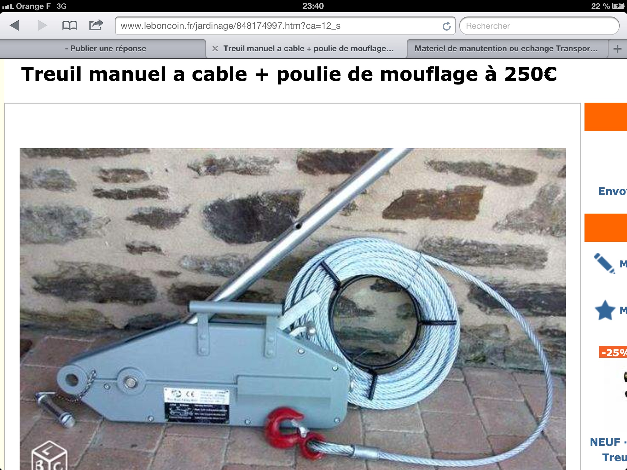 Je plussoie aussi, cet été, j'ai fait du montage de lignes électrique THT, quand tu es sur un 5t mouflé qui tire lourd, même avec un manche rallongé, même à 2 pour pomper, je te garantie que les pauses sont les bienvenues, et ton bourbier à l'intérêt d'être court, paske celui même comme le tracteur, t'en a pour un bon moment orcHOlivier wrote: Prévois quand même un tube pour rallonger le manche du tirfor et bouffe un bon steak![]()