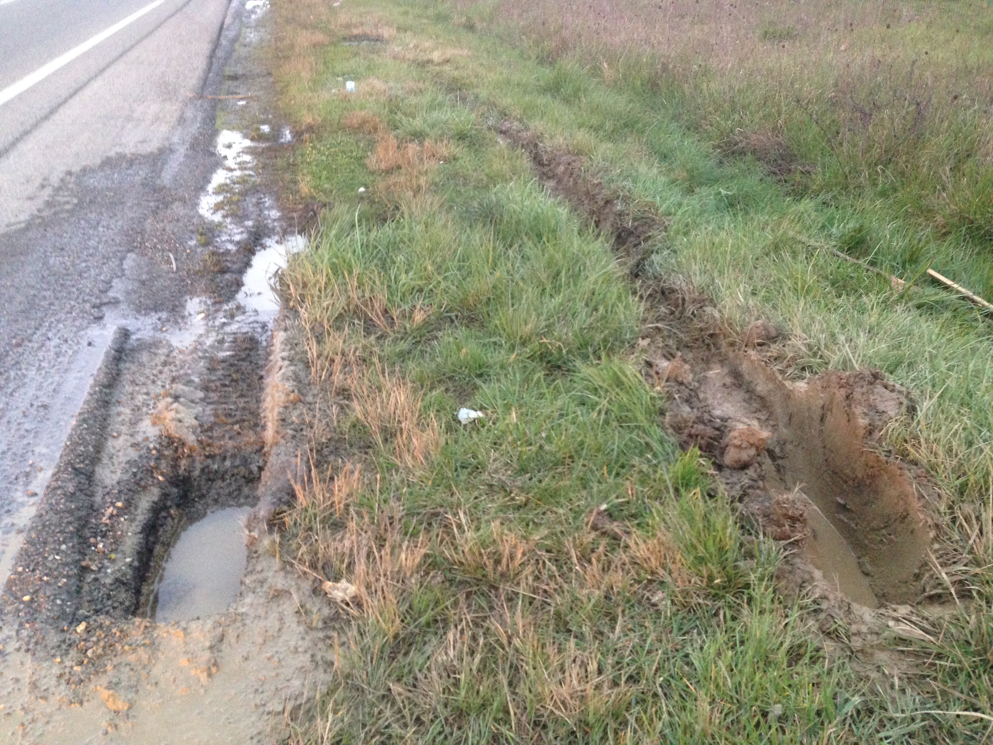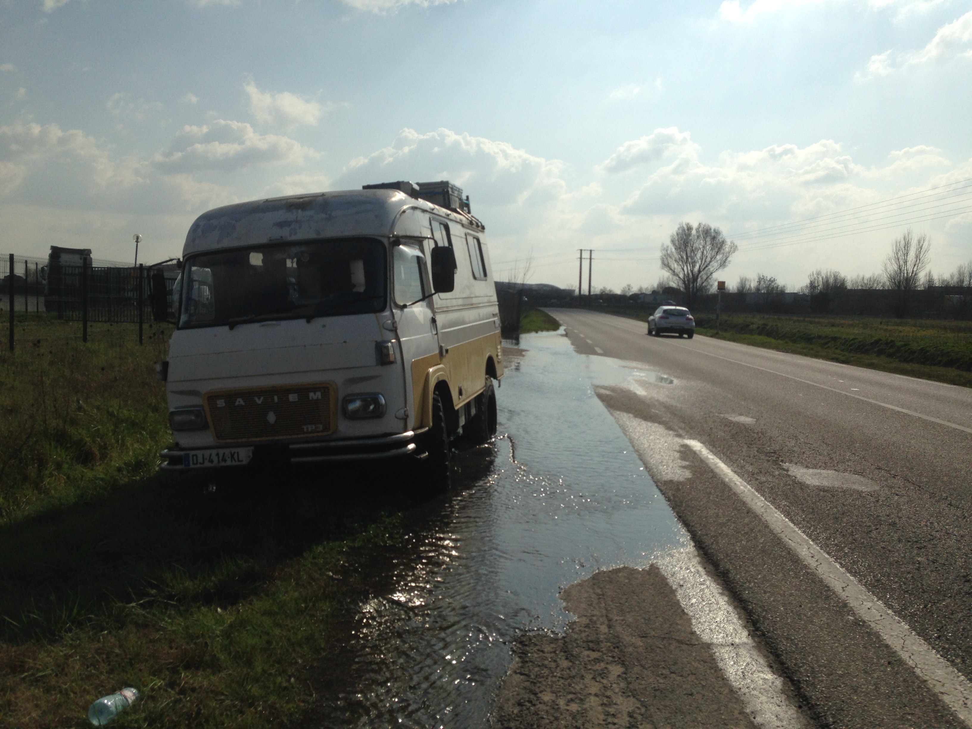 Ah ben oui toi tu choisis bien tes coins pour la pause pipi !!! Toujours se méfier des bas côté près d'un fossé, c'est plus piégeux qu'un chemin forestier ces trucs là...