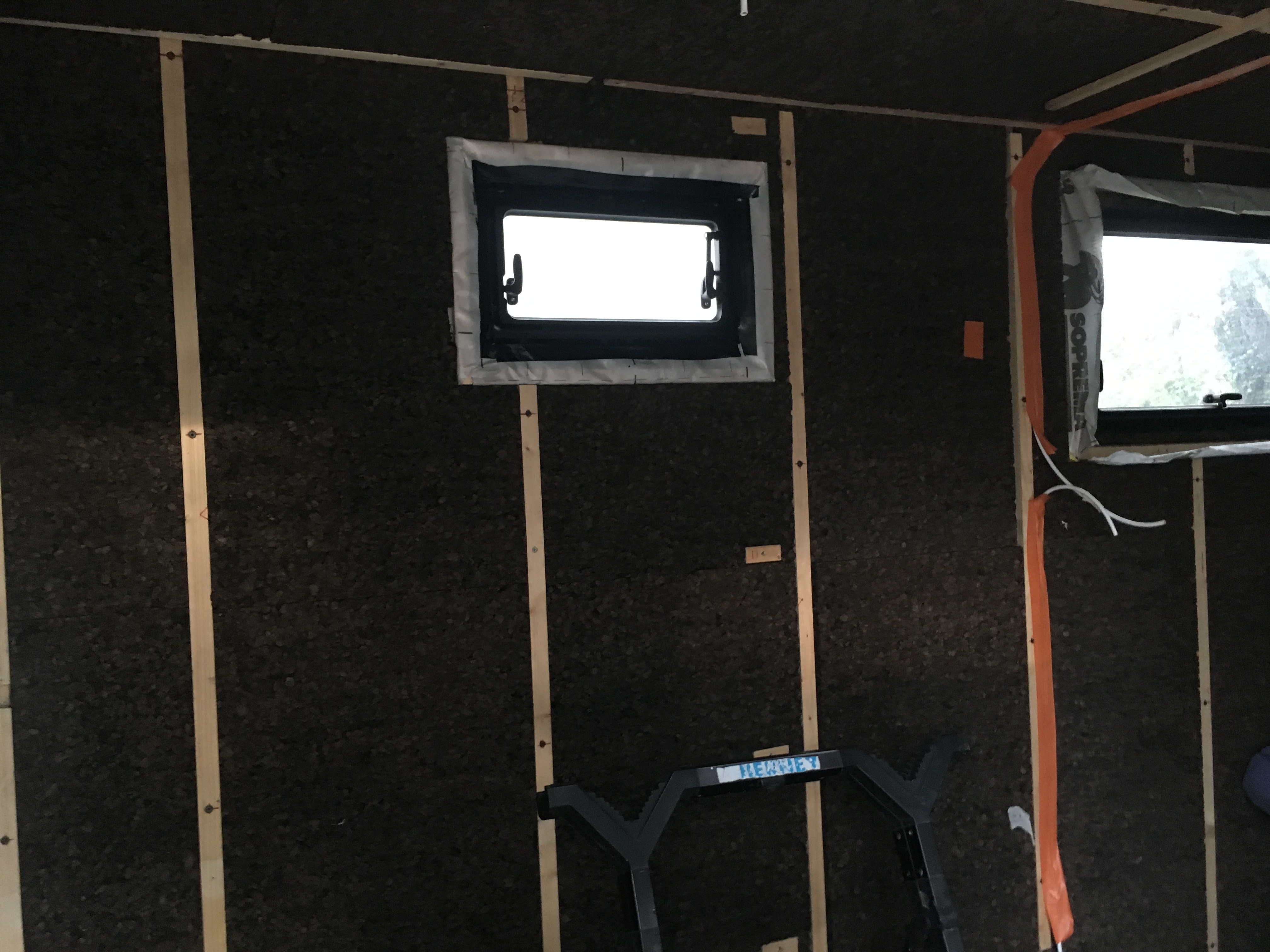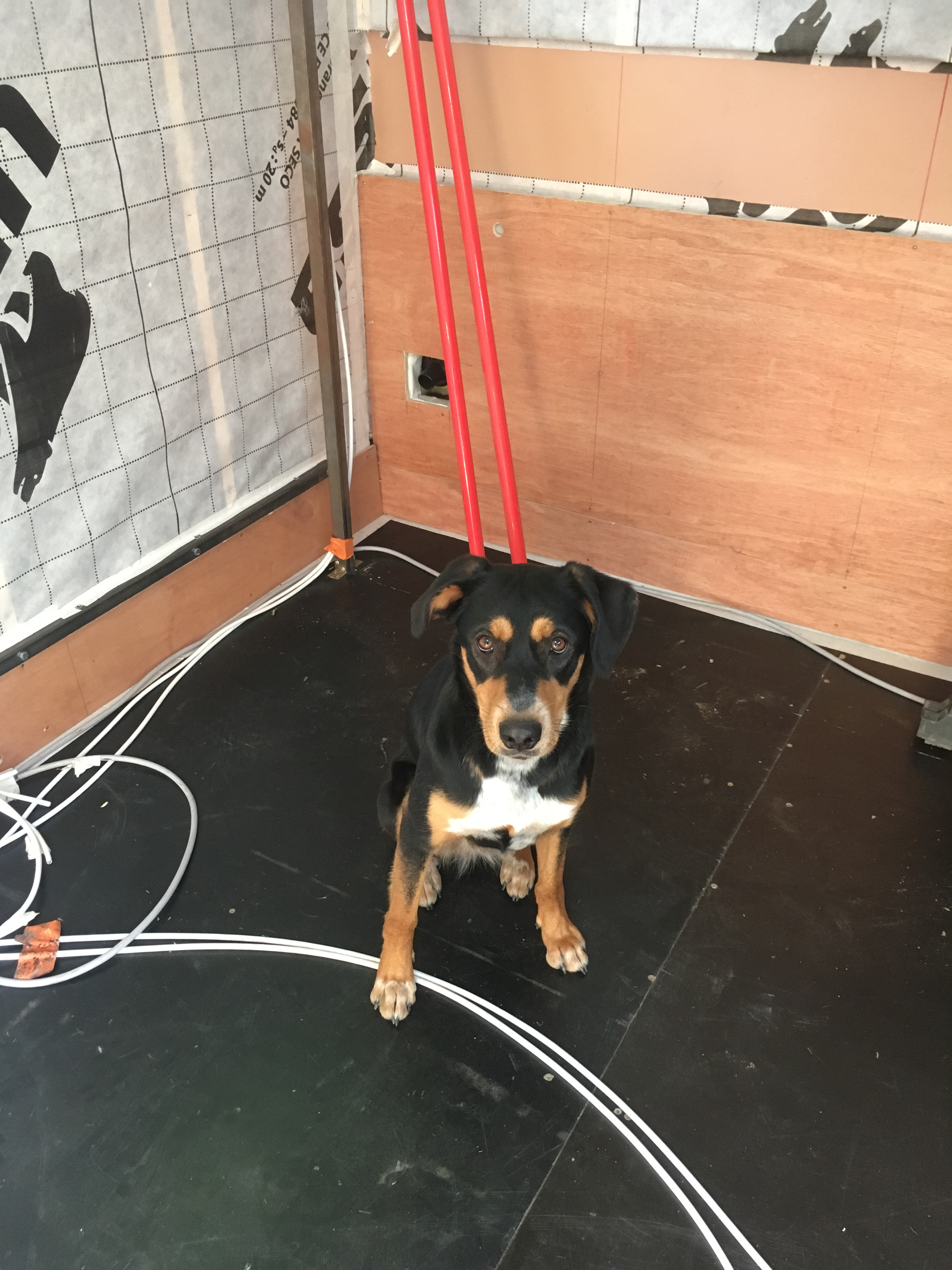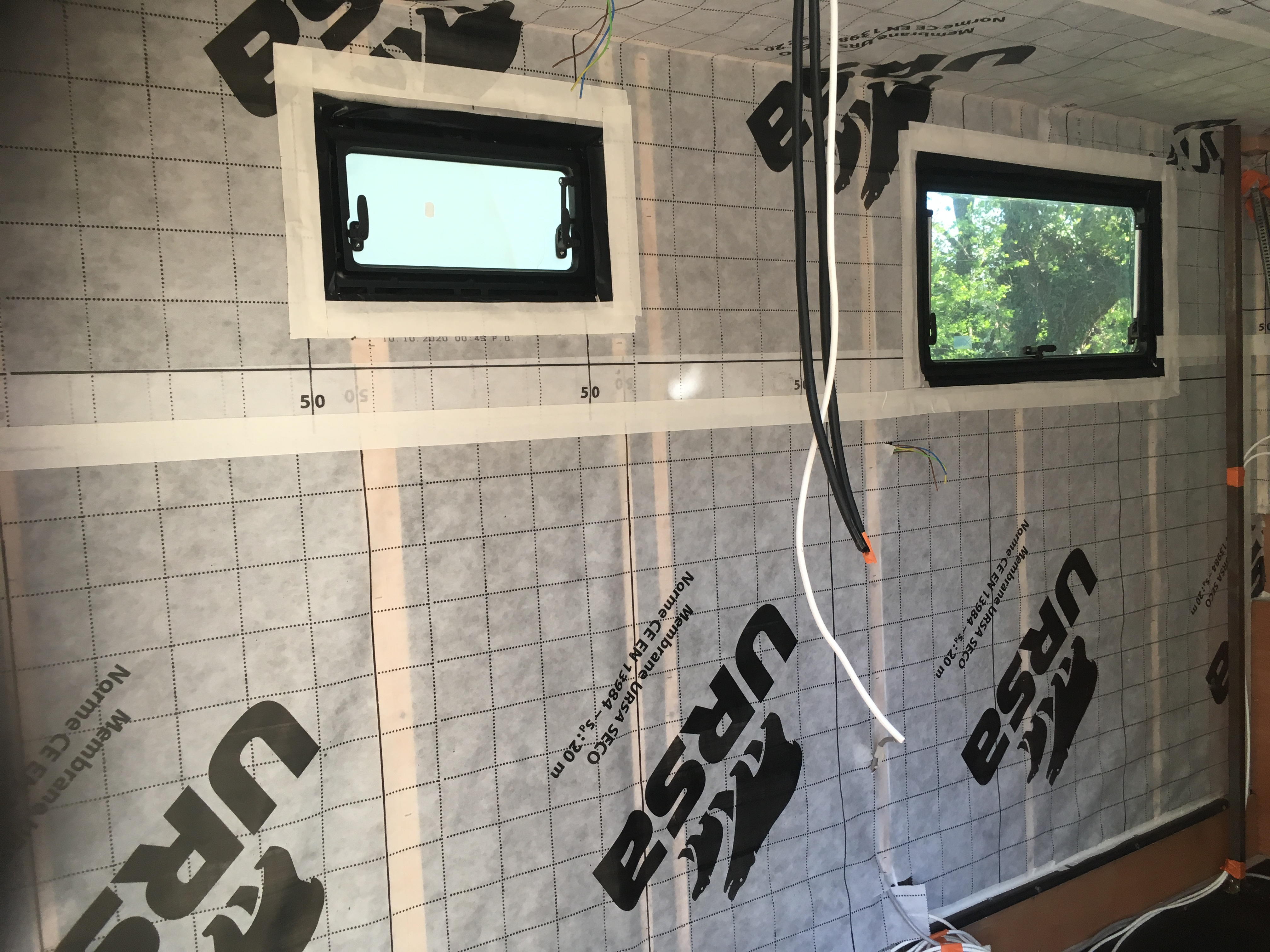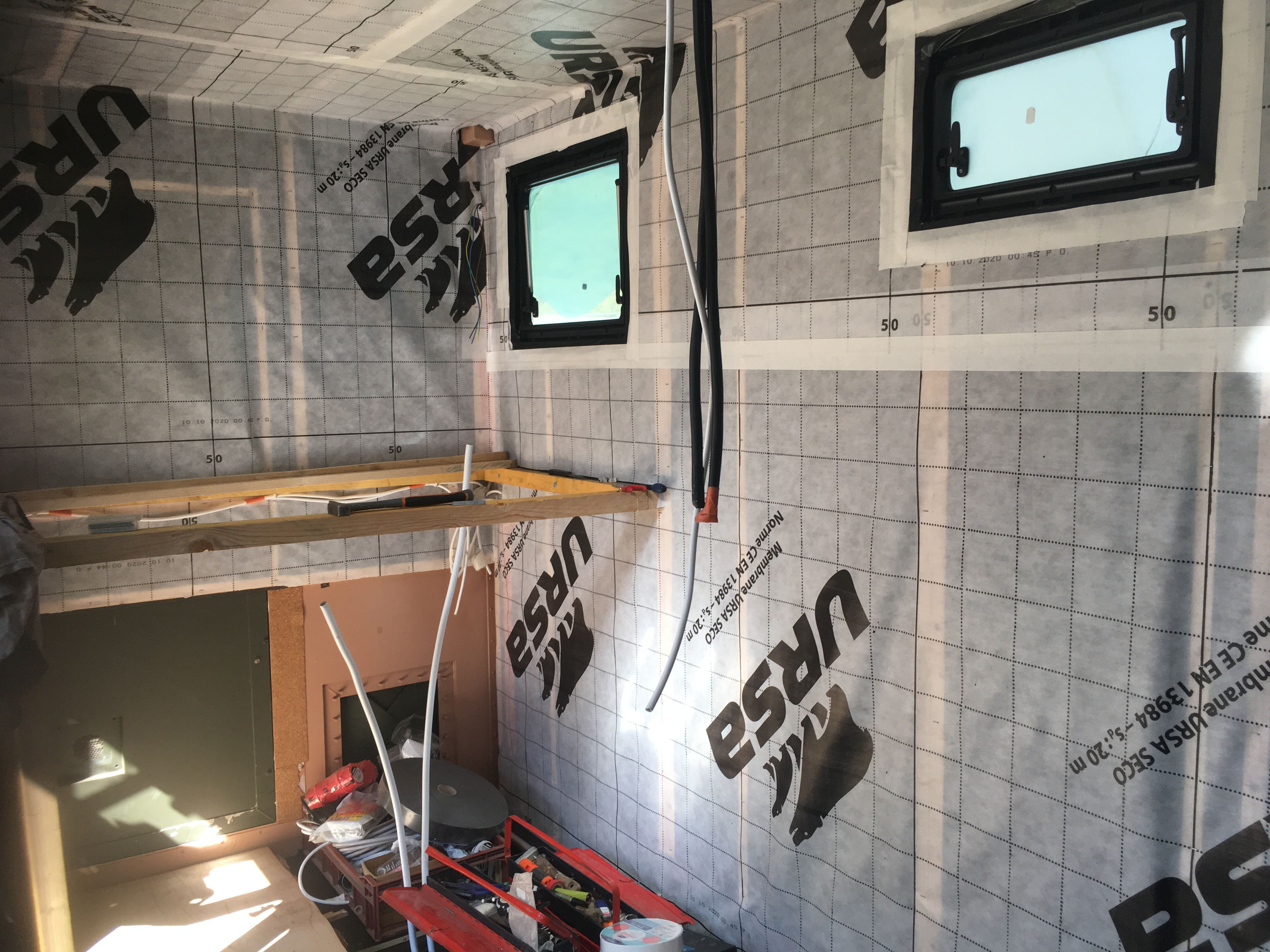 Suite des travaux ... Pose du pare-vapeur, électricité et contreplaqué et toujours notre petite boule de poil en inspecteur des travaux finis ...😁