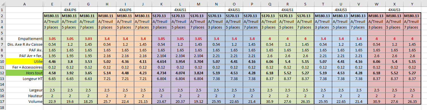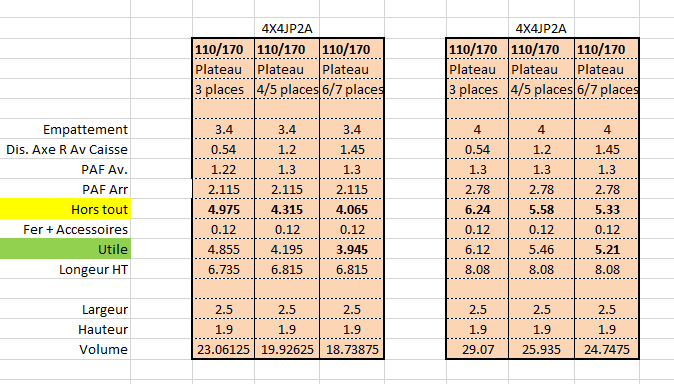 La première colonne correspond au 2.85 sans treuil, comment calculer la longueur carrossable d'après les données de ce BR?