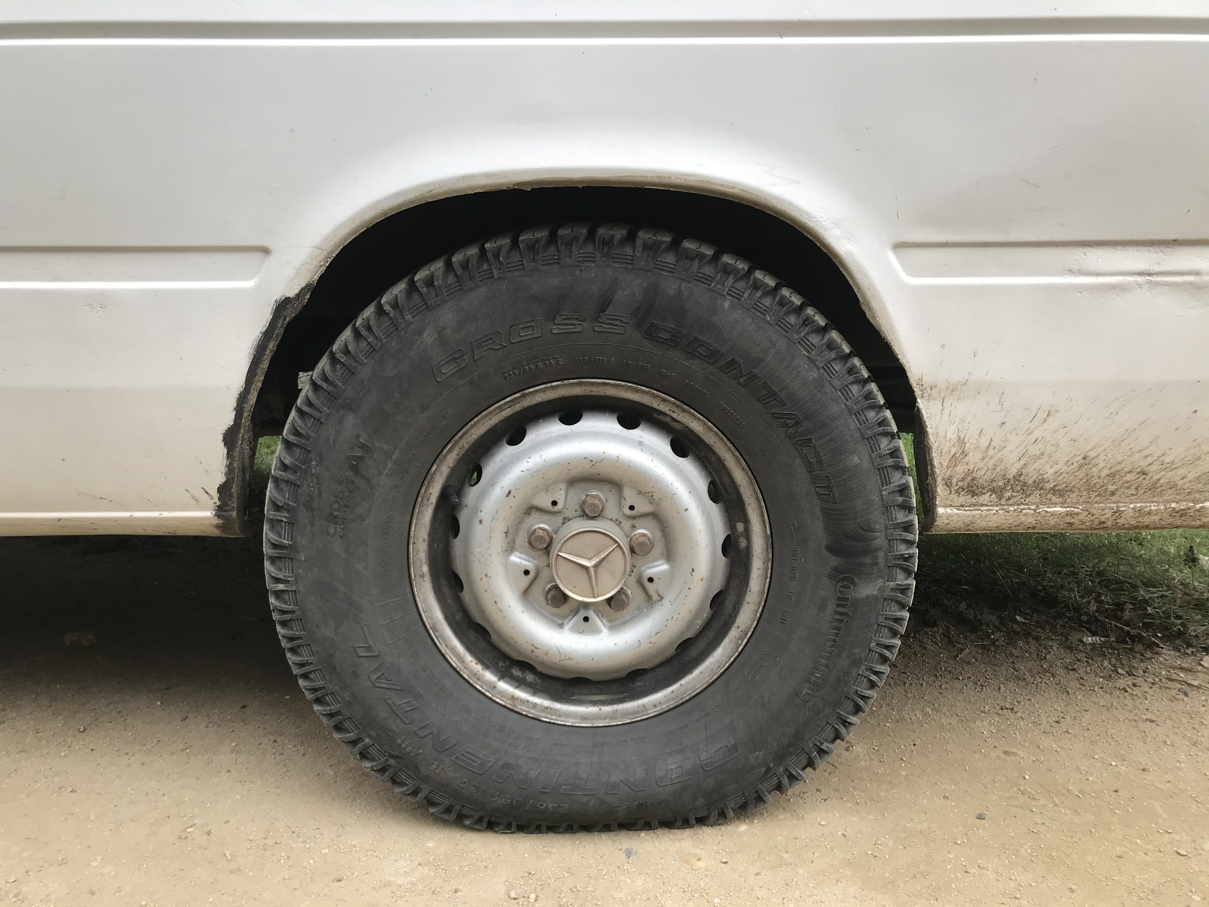 A la première reprise d'adhérence, coucou la transmission 😅😂. C'est l'équivalent du vieux 9.00x16, c'est énorme pour les minuscules ponts de Sprinter.