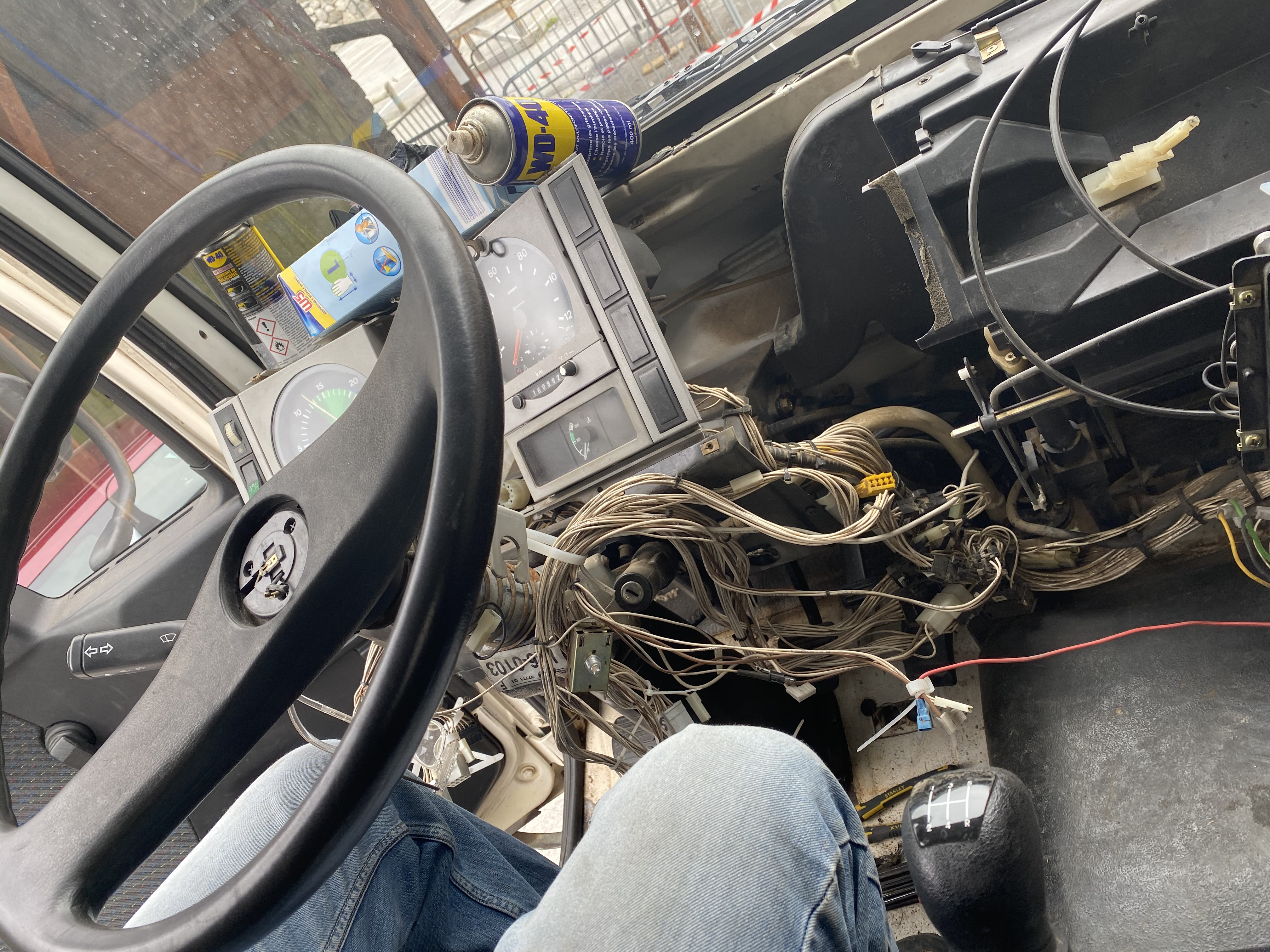 Démontage de tout les inters de tableau de bord, pour nettoyage, tout cour déjà et de contacteur. Il y en avait qui étaient très difficile à enclenché. Et gros gros nettoyage... Il y a 23 ans de poussière, de terre et je ne sais quoi dedans.