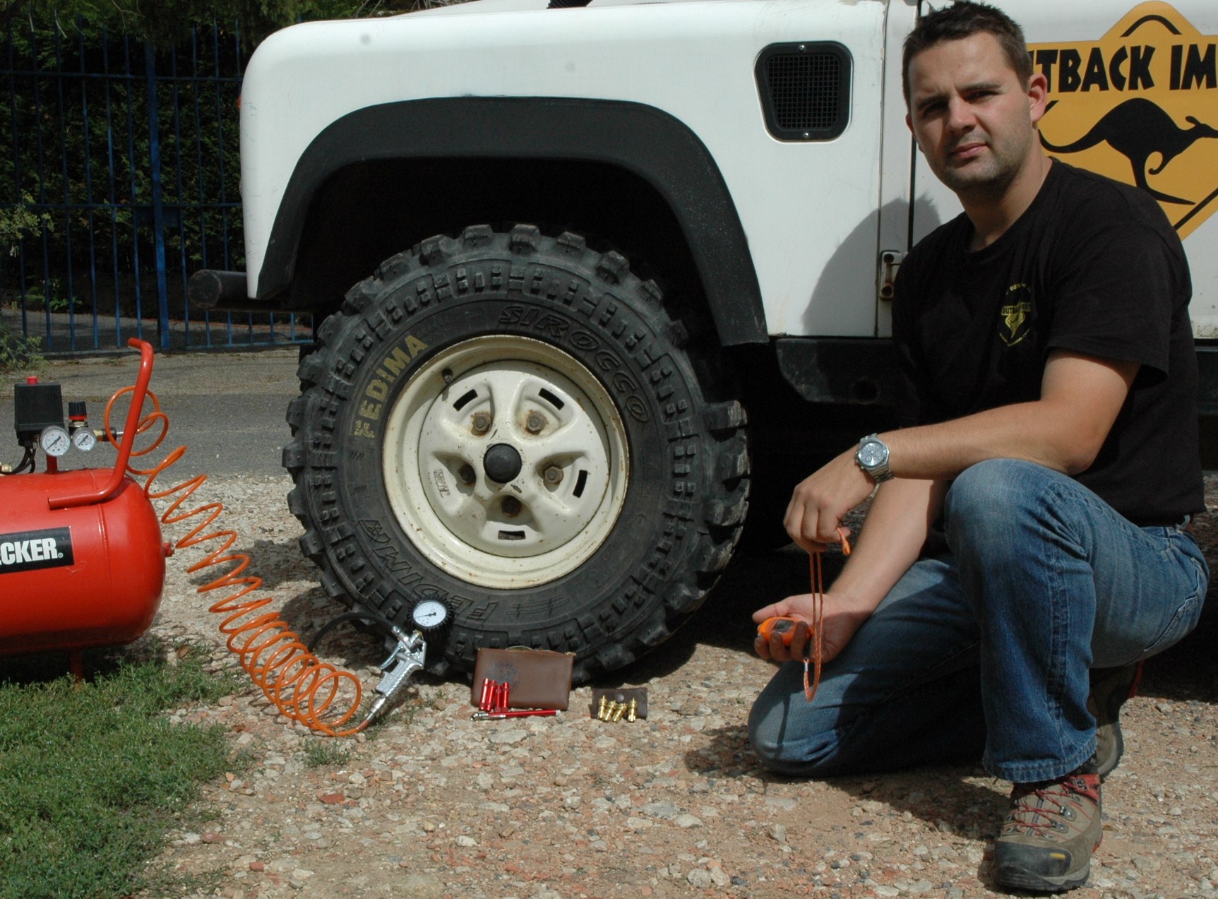 La première étape du test est de s’assurer que les quatre pneus du Land sont bien à 2.5 kg car celui-ci ne bougeant pas tout les jours, il y a parfois de légère perte de pression.