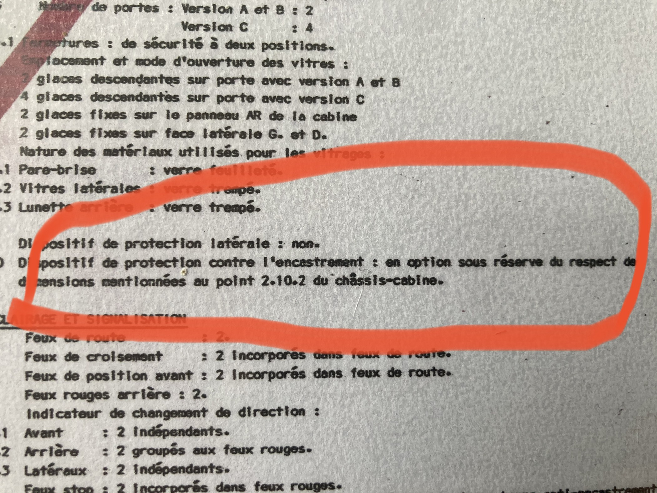 Ce qui est car même aberrant c'est que sur mon barré rouge je n'ai pas de ceintures de sécurité et pour l'homologation il ne faut surtout pas que j'en ai ( je cite mon DREALMAN ) .........et j'ai pourtant sur ce même barré rouge l'absence de barre anti encastrement .........va comprendre Charles .