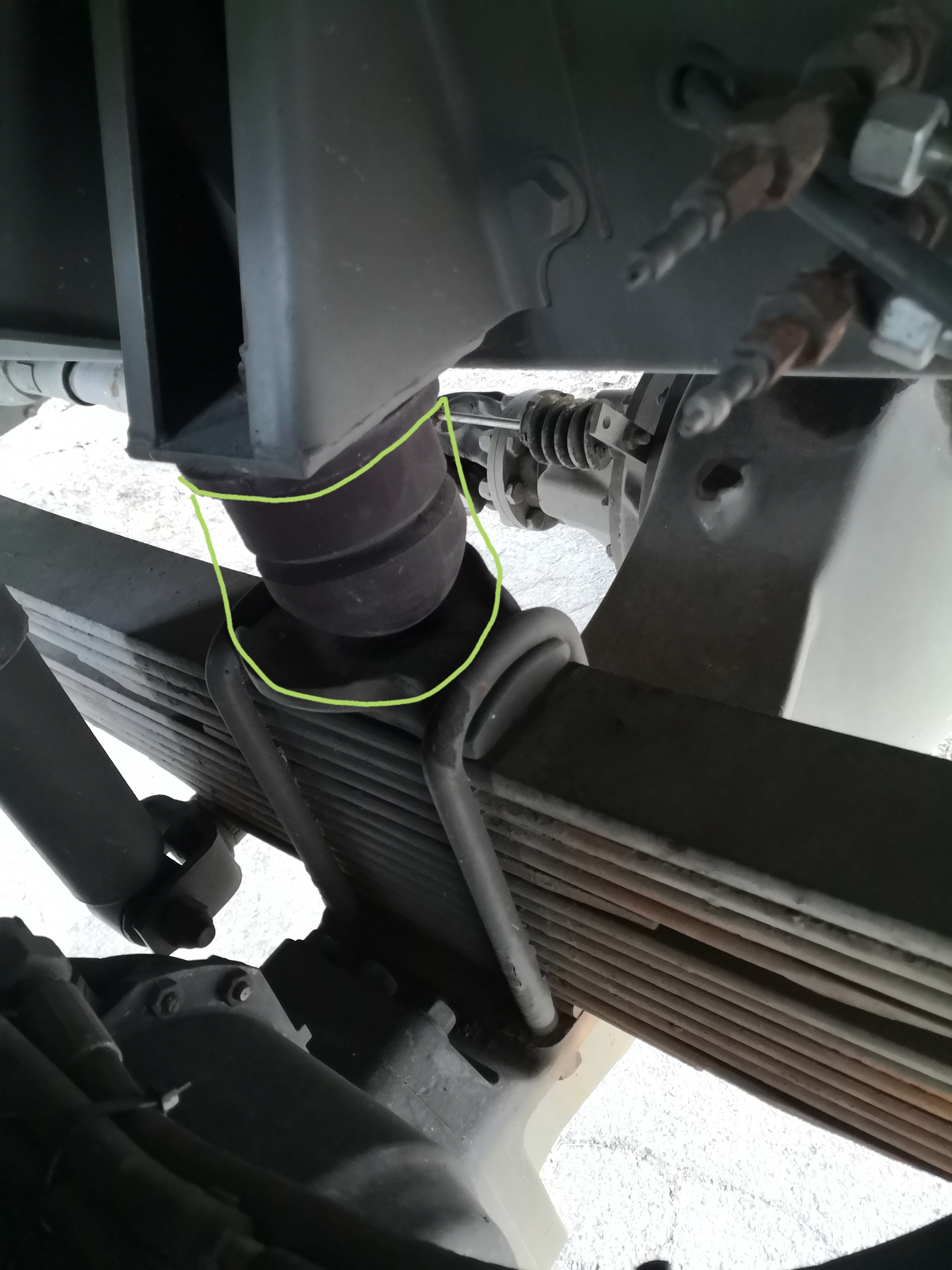 Sinon voici une photo du pont arrière. Par contre entre mes lames qui sont affaissé et le fait d'avoir à peu près 1T de chargement , difficile de se faire une idée de l'espacement utile pour des ressorts ou coussin gonflable.
