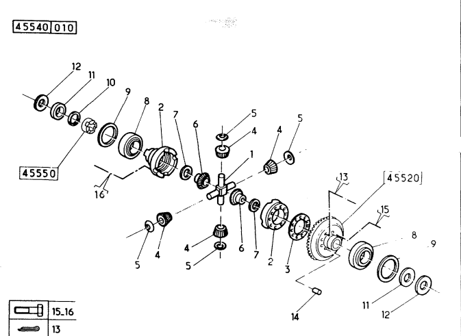 - Est-ce qu'on parle bien de la bague à créneaux (crabot) visible sur les vues 45540 et 45550 des catalogues de pièces ? Si oui, il semble y avoir des cales et des bagues sur le même axe que le crabot (REP 10,11,12 sur la vue 45540) . Ça tient comment ?
