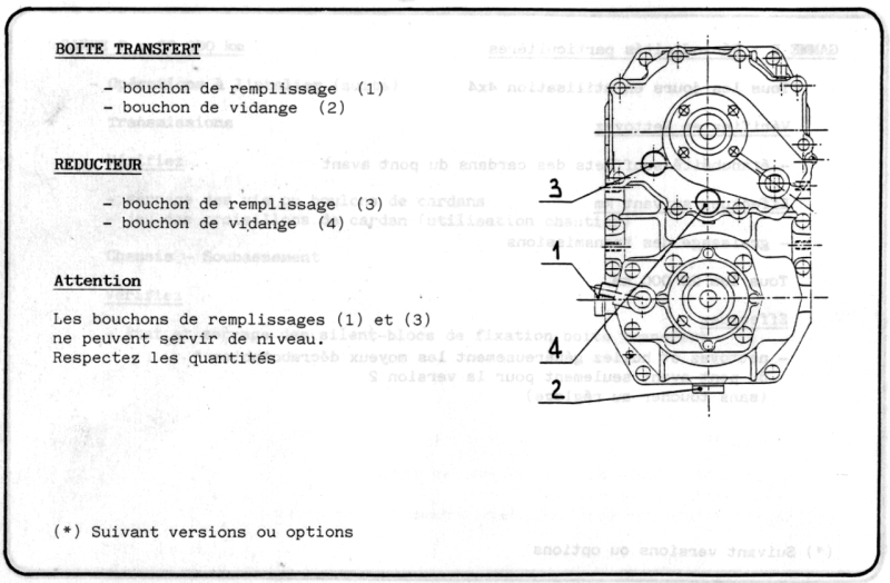 Pouvez vous me préciser quelle type d’huile ou sommaire à mettre pour une boîte de transfert avec réducteur don 2 carter réservoir.