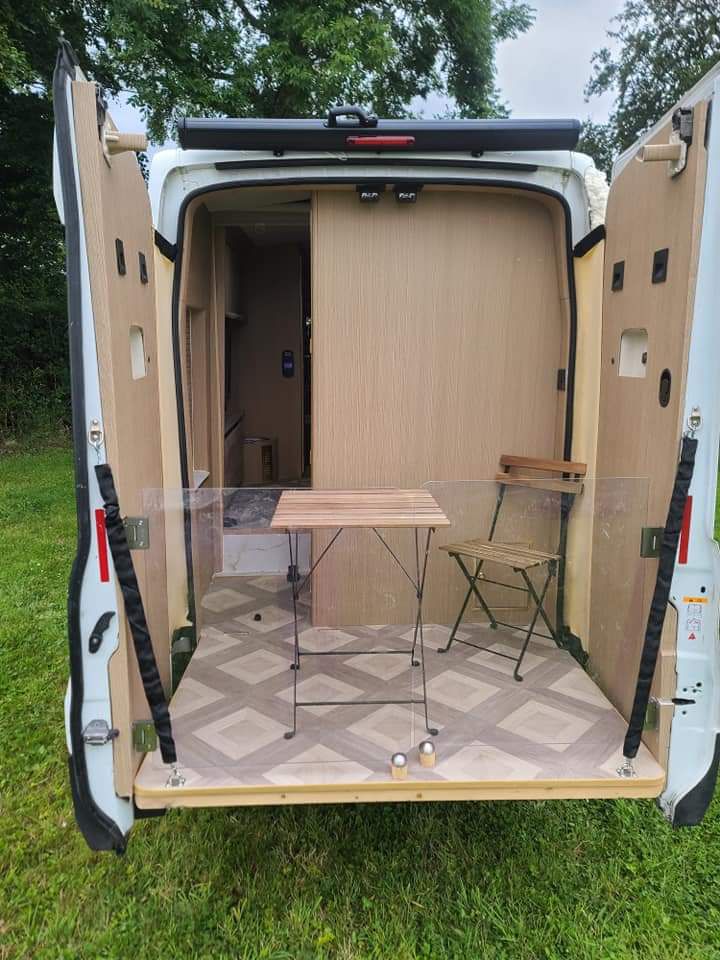 donc forcément celui ci avec un hayon dans toute sa largeur propose un espace plus facilement exploitable que sur d'autres véhicules qui ne feraient déjà que 2m de large et dont en plus le hayon, ou les portes battantes arrières d'un fourgon assemblées comme je l'ai fait sur le miens, donne une largeur bien moins généreuse et dont on trouve bien plus vite les limites même si, ajouter 2m2 a un véhicule qui n'en fait que 6 habitables est déjà un sentiment de gain énorme. pas de quoi sortir les chaises pliantes néanmoins