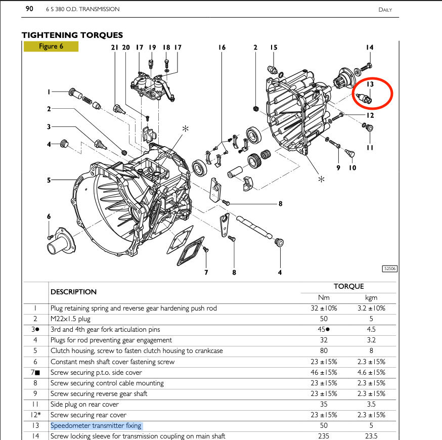 Pour la boite Come tu peux monter une 6s380 (iveco daily )ou 6s400 (iveco massive )la 6 éme est a 0.791 .Pour les modifs faut changer volant moteur embrayage support de boite de chaque coté du moteur .Revoir l'attache arriere de la boite , coupé et rééquilibrer l' arbre de transmission (la boite est plus longue de 13 cm si mes souvenir sont exact)mais l'angle de l'arbre BV/BT change de peux de degrés donc ca passe .Plus modif sur commande d'embrayage passé d'un câble (tiré) a l'hydraulique (poussé) .