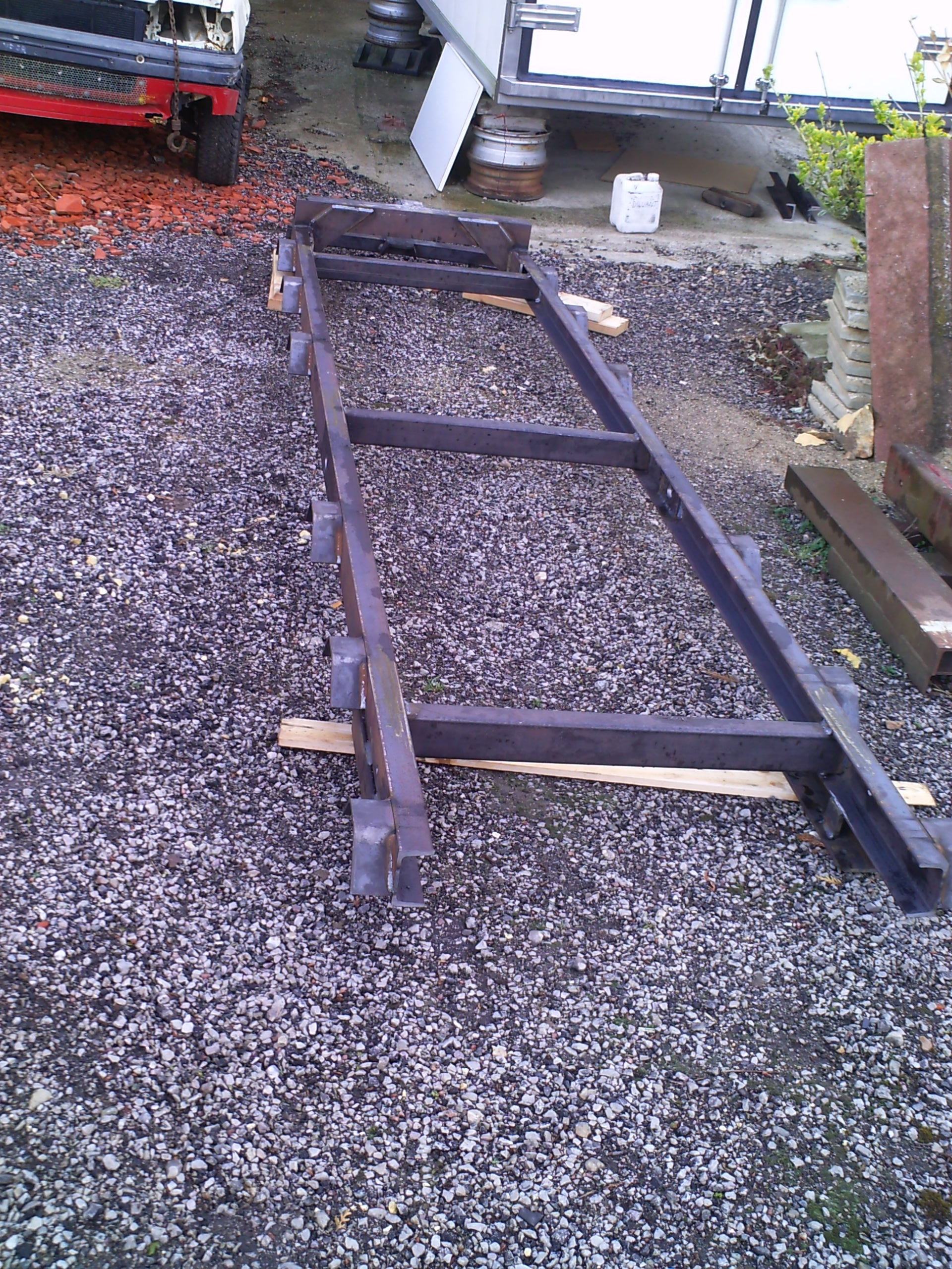 cette semaine au garage j'ai mesurer de combien le châssis du trm se vrille, au final pas grand chose, environ 5 cm sur la longueur (soit 4 m entre bout du châssis et dos de cabine)