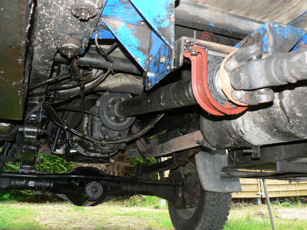 Effectivement, les "Duchateaux" sont rentrés sans la BT de transfert. Vu qu'ils n'avaient pas d'arbre de transmission de B90 en version 2 roues motrices, ils ont fait un montage maison avec un palier et un arbre de transmission spécifique.